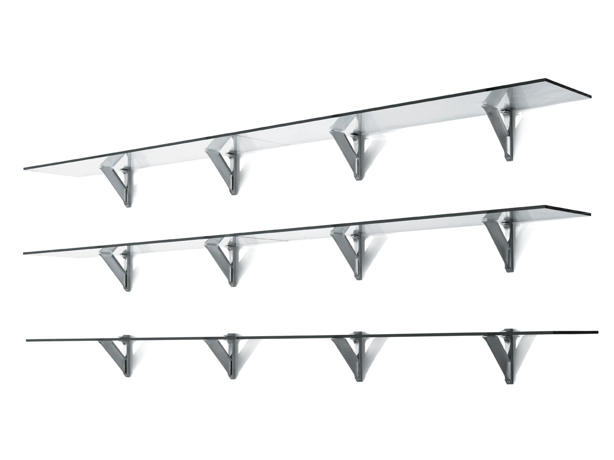 The Magis To The Wall Shelving System is available in a range of depths and lengths. They attach to the wall with the use of two solid clamps.