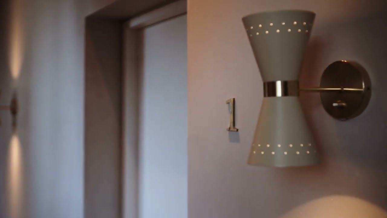 Alf Svensson brings his trademark attention to detail to the Audo Copenhagen Collector Wall Light, combining cone-shaped shades with a luxurious brass frame. The brass lends the piece a distinctly antique feel, while the perforated material allows the light to delicately illuminate your spaces.