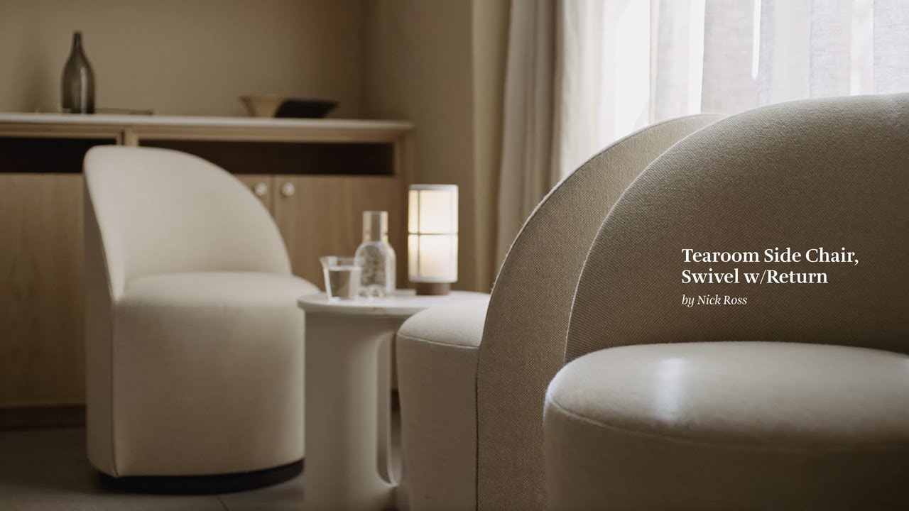 The design of the Tearoom collection has been inspired by the sculptural forms of the Willow Chair, created by Charles Rennie Mackintosh for the Willow Tearooms in Glasgow. Ross has replicated the sumptuous comfort of this interior design classic in the Audo Copenhagen Tearoom Lounge Chair, adding a swivel base to enhance the chair’s functionality. The chair has been designed to provide a cocoon of comfort, its curved backrest wrapping around the body and providing unparalleled support.