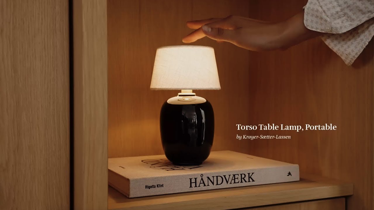 Created as a miniature counterpart to the full-size Torso Table Lamp, the Audo Torso Portable Table Lamp by Kroyer Saetter Lassen brings a sense of intimacy to your home. Petite in its proportions, the design creates a cosy atmosphere with warming light diffused through the luxurious textile shade. A brass-plated button on the top allows you to turn it on with the tap of a finger, while a concealed USB charger in the base ensures easy charging.