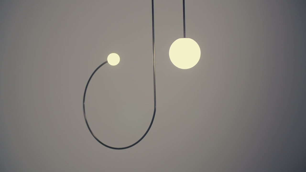 A modern take on the classic chandelier, the Mobile Chandelier 11 is defined by a beautiful, curvaceous metal frame that elegantly supports two luminous opal glass spheres of light. A dramatic piece that is both a work of art and purposeful light source, the hanging mobile design is simple yet breathtakingly beautiful. The light's slender metal frame has been designed to be custom made to your exact required drop length, ensuring the perfect composition for each unique space.