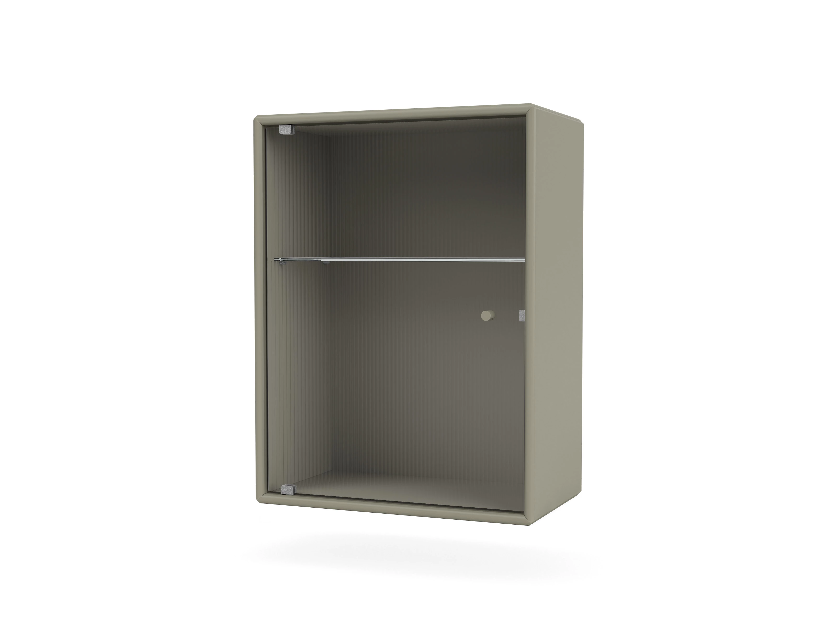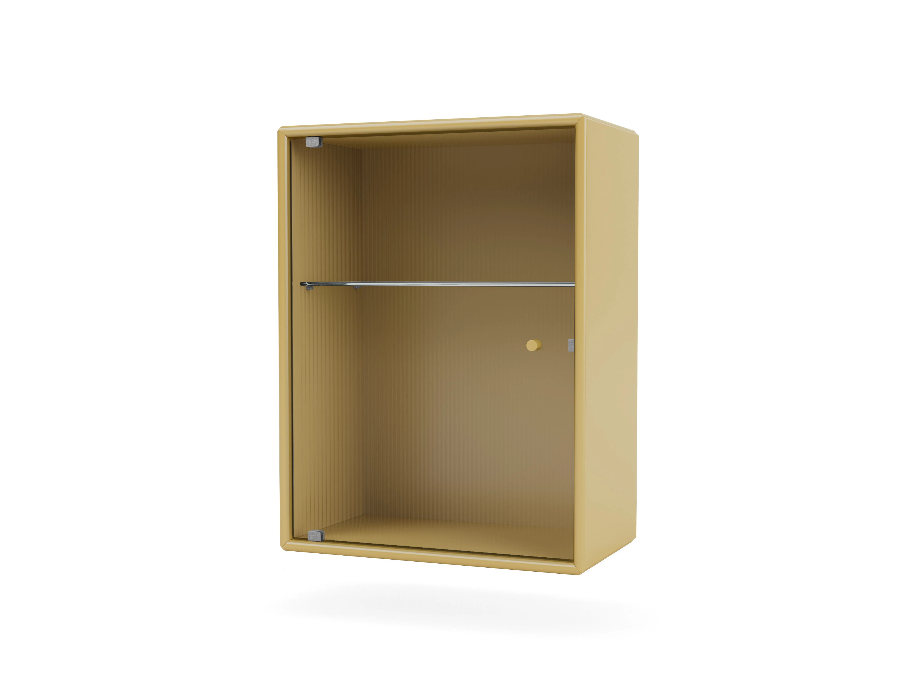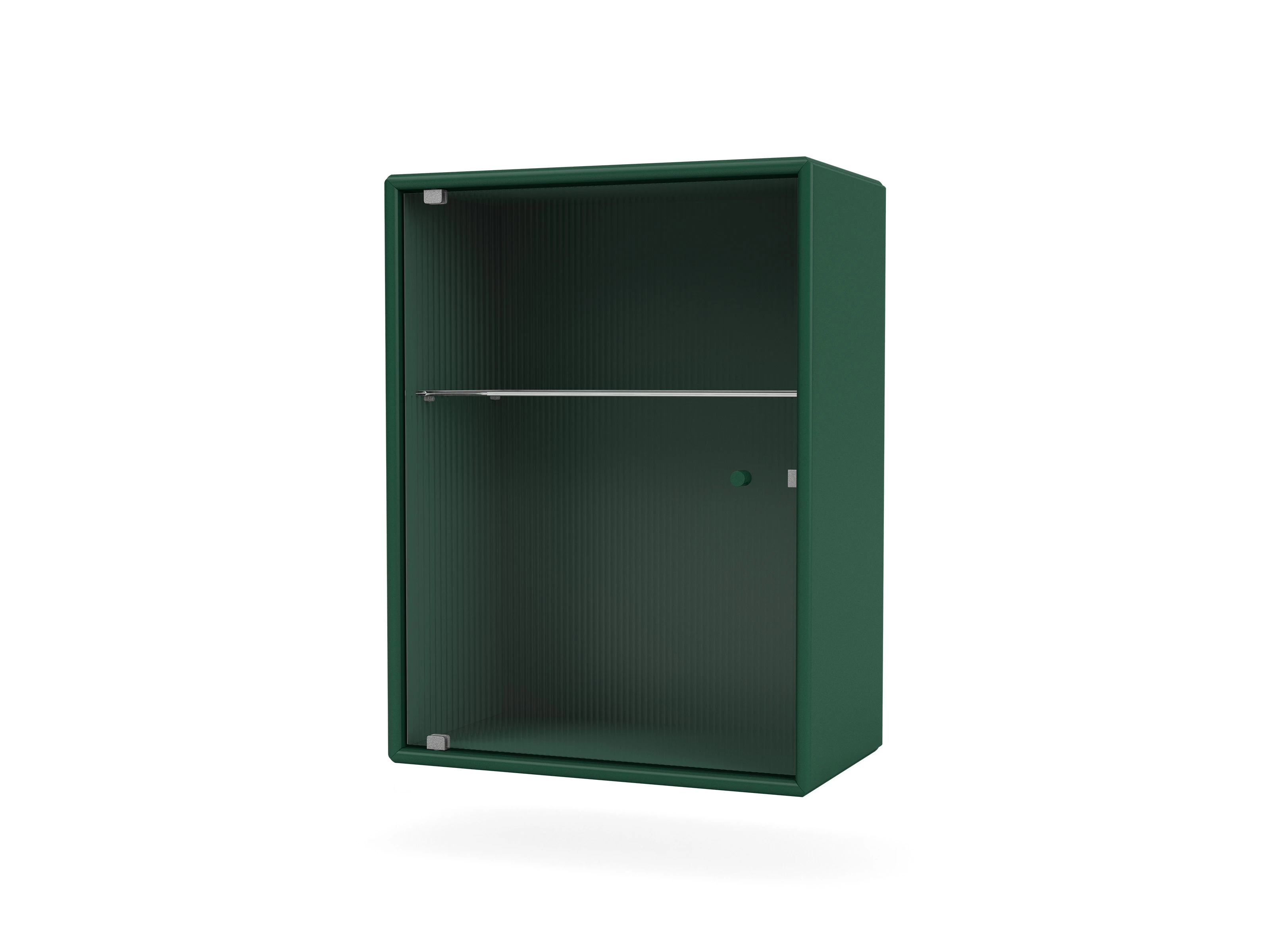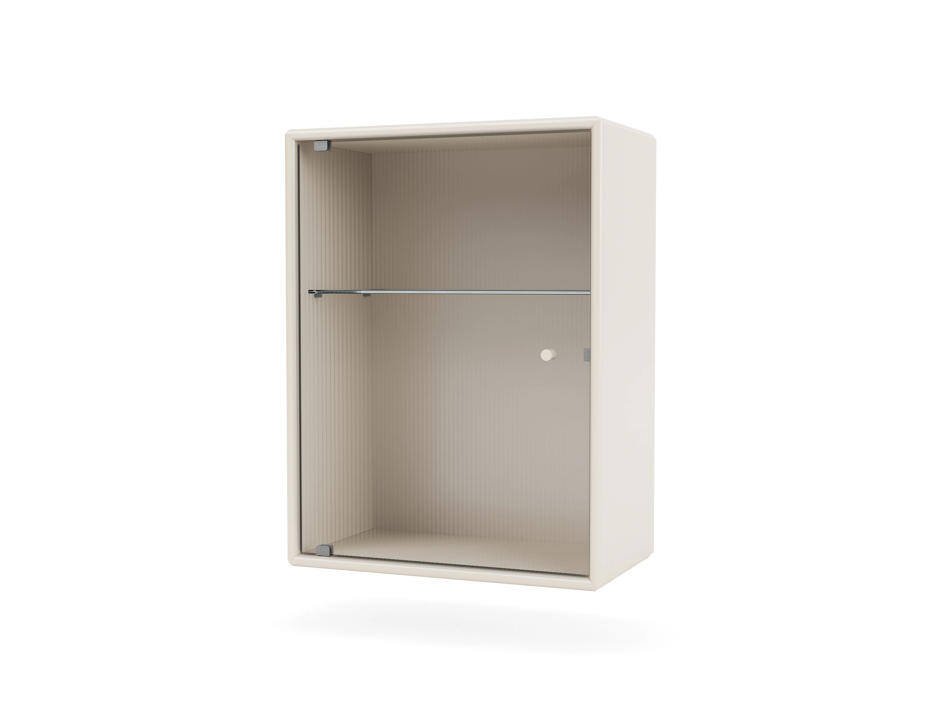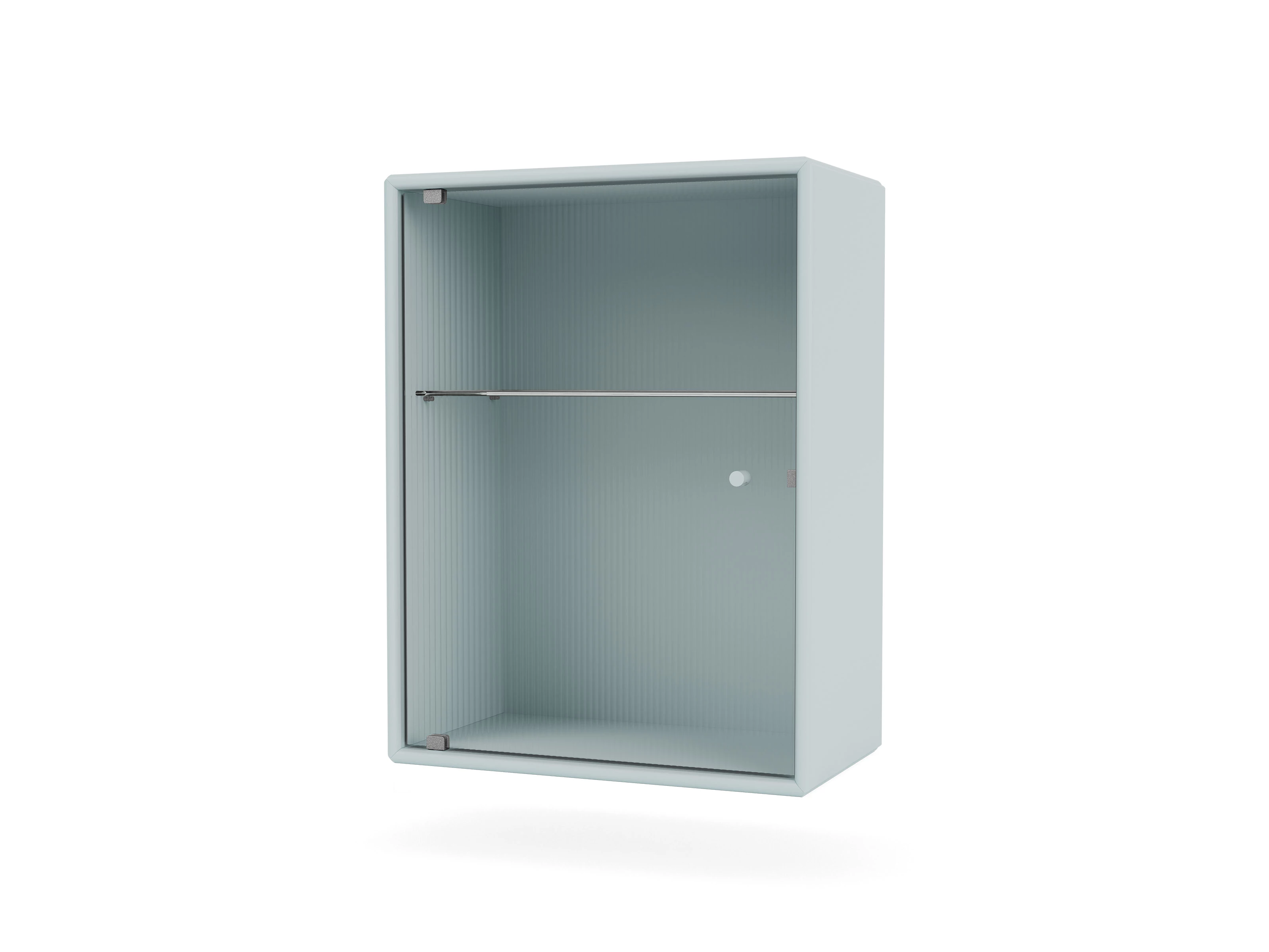 Internally there is a glass shelf, that effortlessly continues the transparent aesthetic set out by the intricately rippled door.