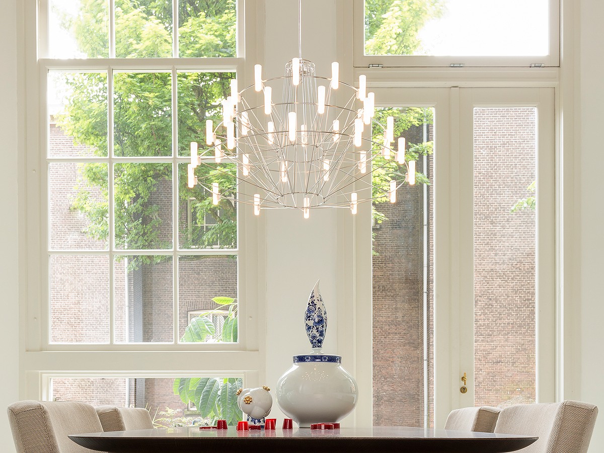 Designed by Arihiro Miyake, the Moooi Coppélia is based on the 19th-century ballet Coppélia which is often considered to be the last Romantic ballet of the era. Inspired by the ballerina's graceful performance the light comes to life in a whirl of flowing motion and scintillating light, dancing the darkness away. With its fluid elegance and delicate glow, this pendant is unquestionably the perfect dancing star of any space. Also available in a larger size.