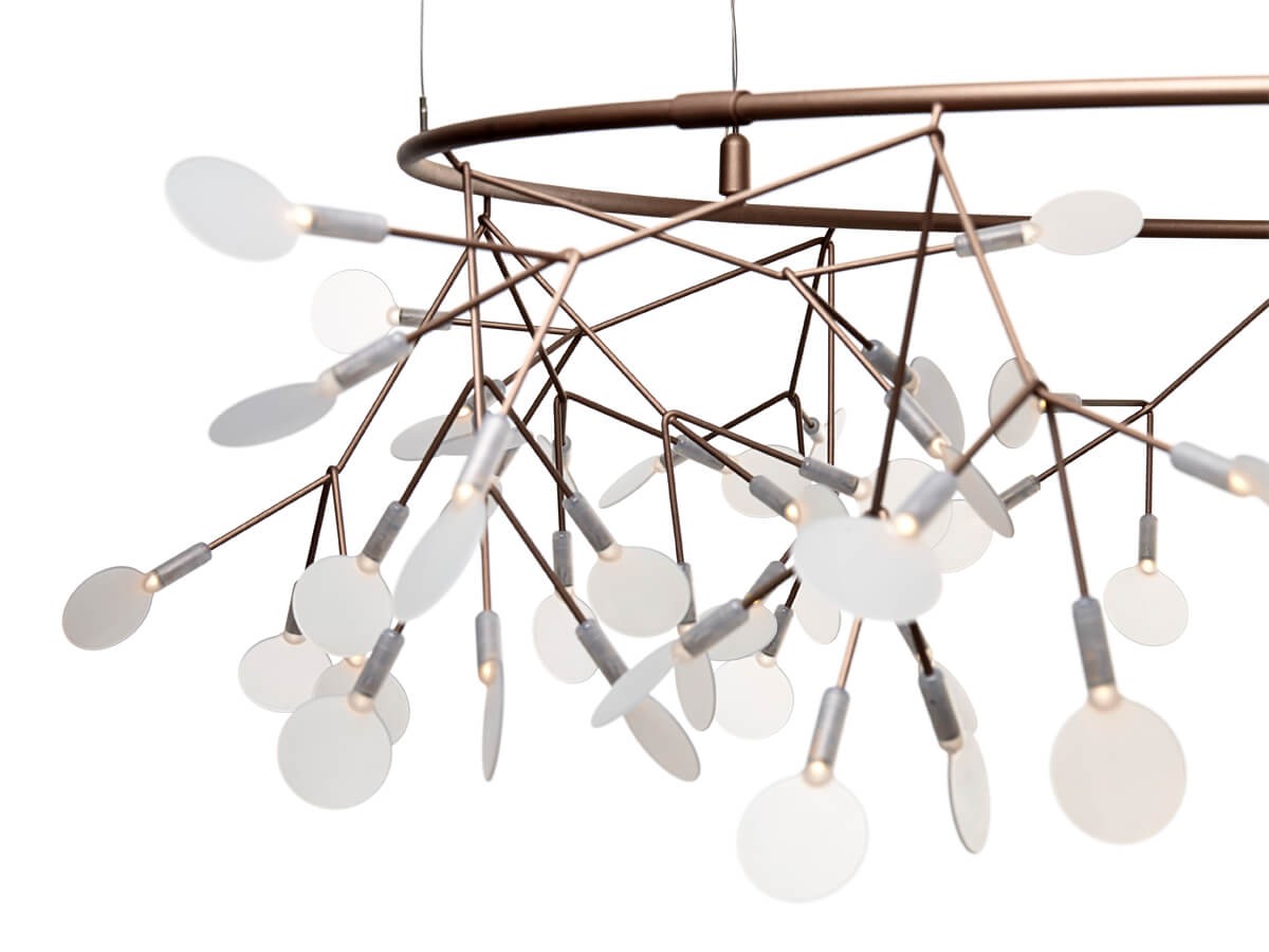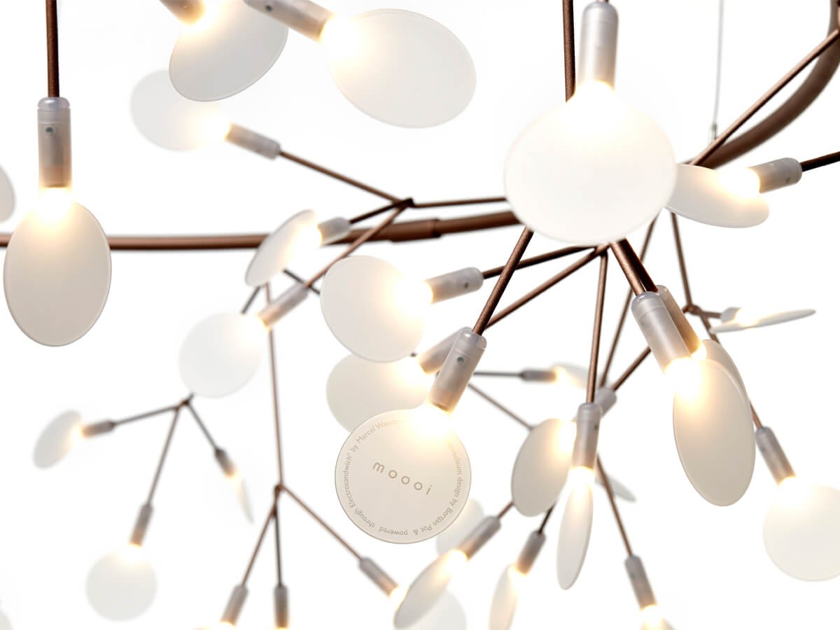 Just like the plant that inspired it, the Small Big O is expanding, transforming and growing new leaves which are malleable, freely re-positioned by rotating them around their stem. Heracleum showcases a new technology, developed by Marcel Wanders, transporting the electrical charge through the exterior paintwork of the frame, a charge that is so low that it poses no threat but allows for a wireless design. The light is dimmable, allowing a beautiful illumination wherever it is placed; in the bedroom, over a dining table or hanging within a living room.