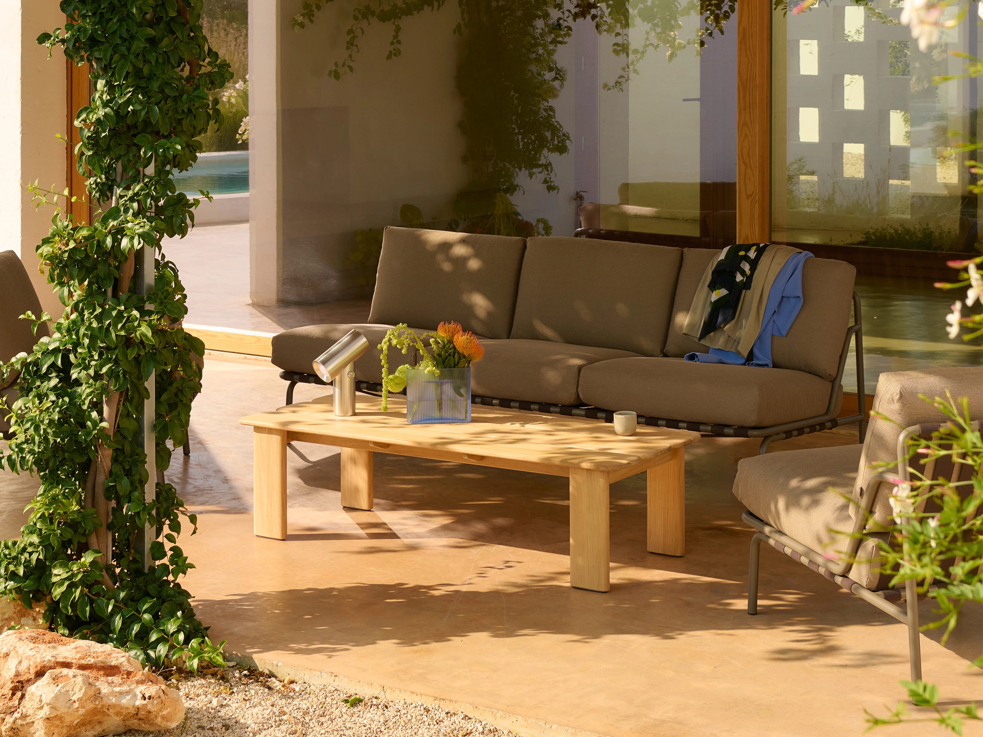 Part of an outdoor furniture collection that focuses on material honesty and exquisite craftsmanship, the Rectangle Assemble Coffee Table reveals teak’s natural character through wide boards, rounded edges and a discreet spacing detail that lets the wood respond to changing seasons while retaining its organic charm.