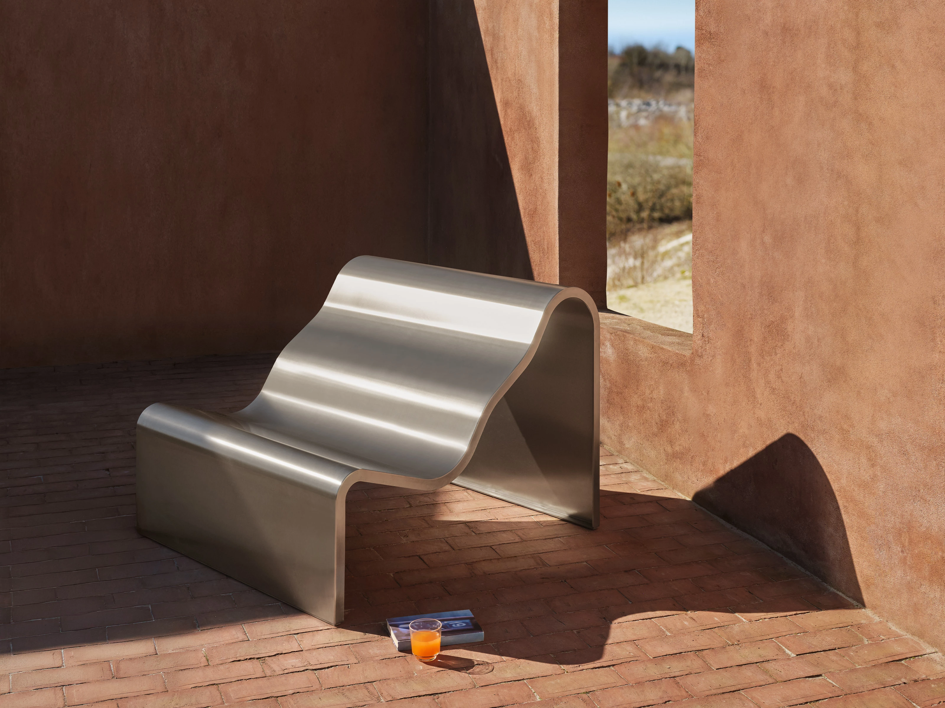 Available in two sizes and made from brushed stainless steel with a mirror finish, the Dream View Bench subtly captures shifting light and colour in its vicinity, enhancing its sensory and aesthetic appeal. From conservatory to courtyard, the piece’s minimalist style spans spaces indoors and beyond, while its sculptural form invites relaxation and quiet contemplation.