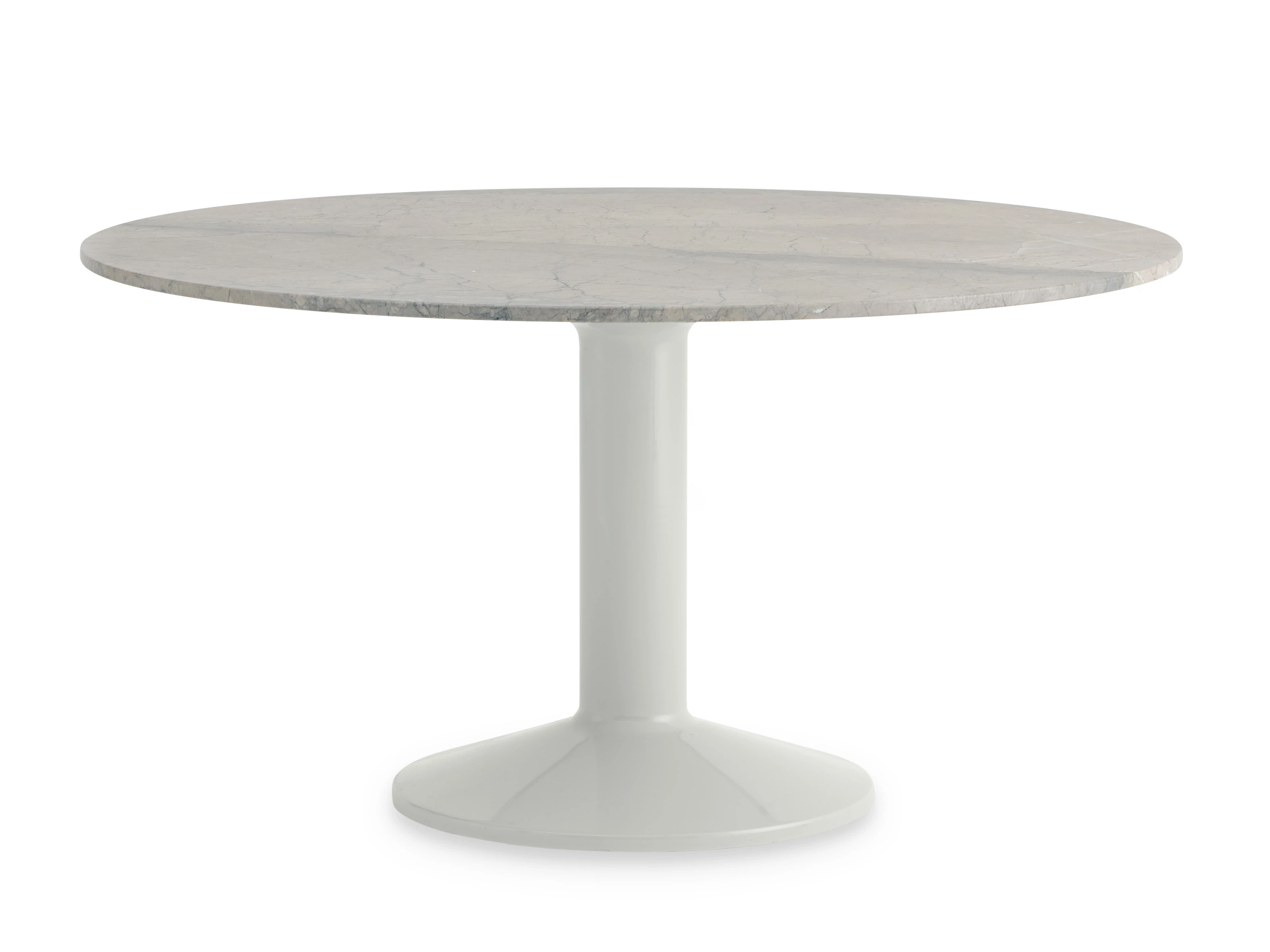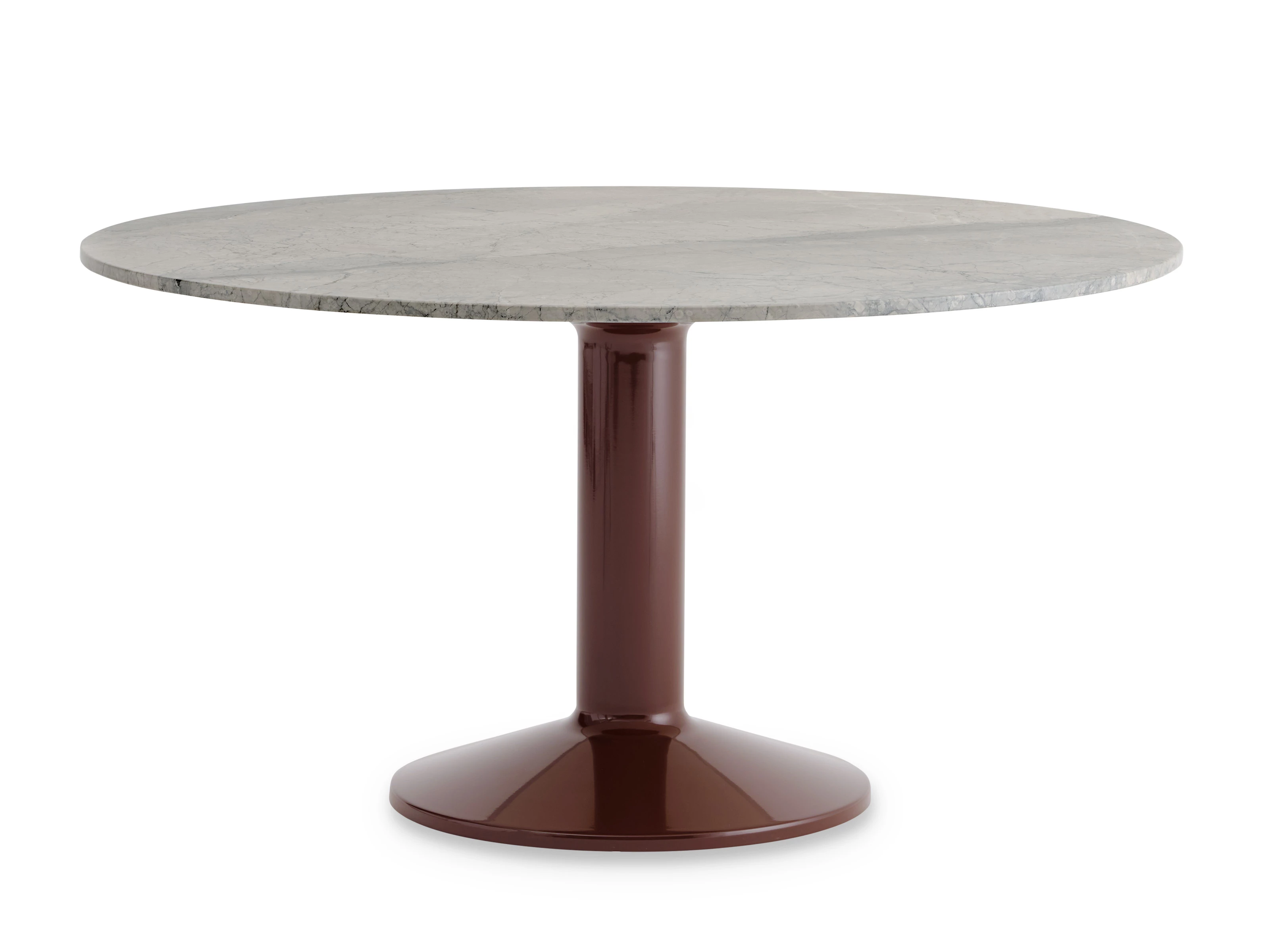The Midst Table takes its name from its central foundation - a natural focal point that symbolises strength and balance. A monolithic spun-steel base, available in various colourways, unites with a beautiful honed marble tabletop, creating a rich interplay of materials that feels both robust and graceful.