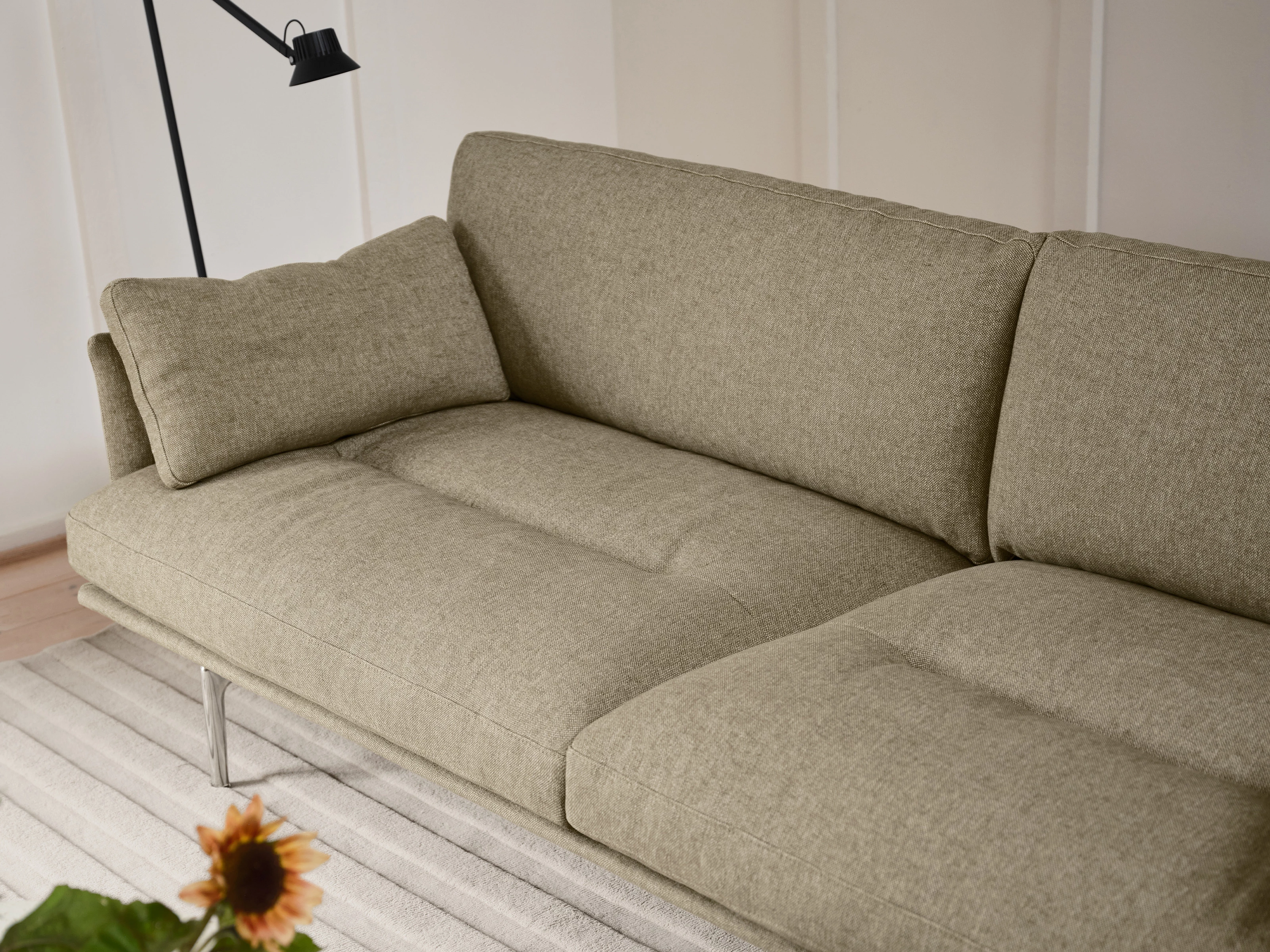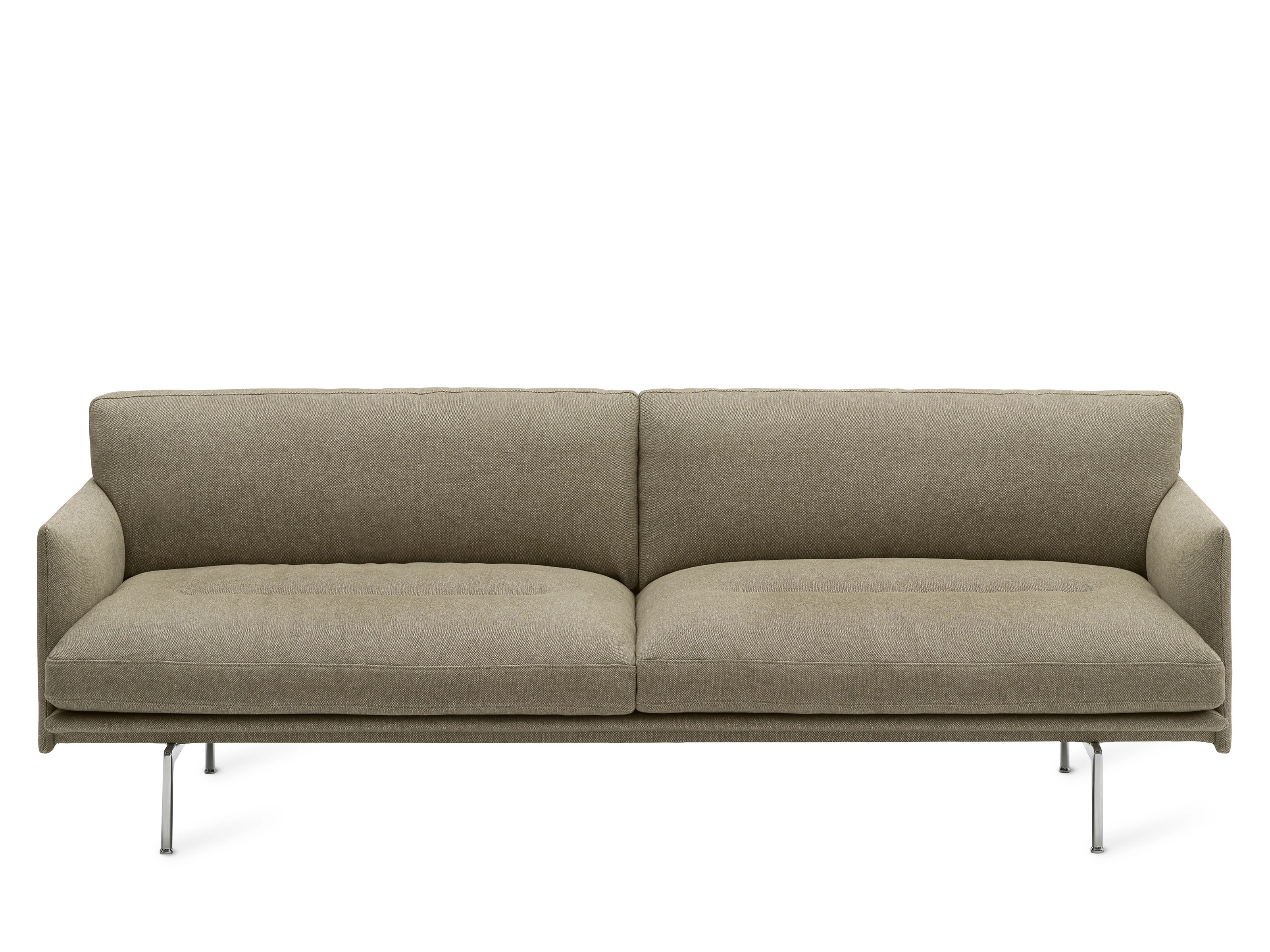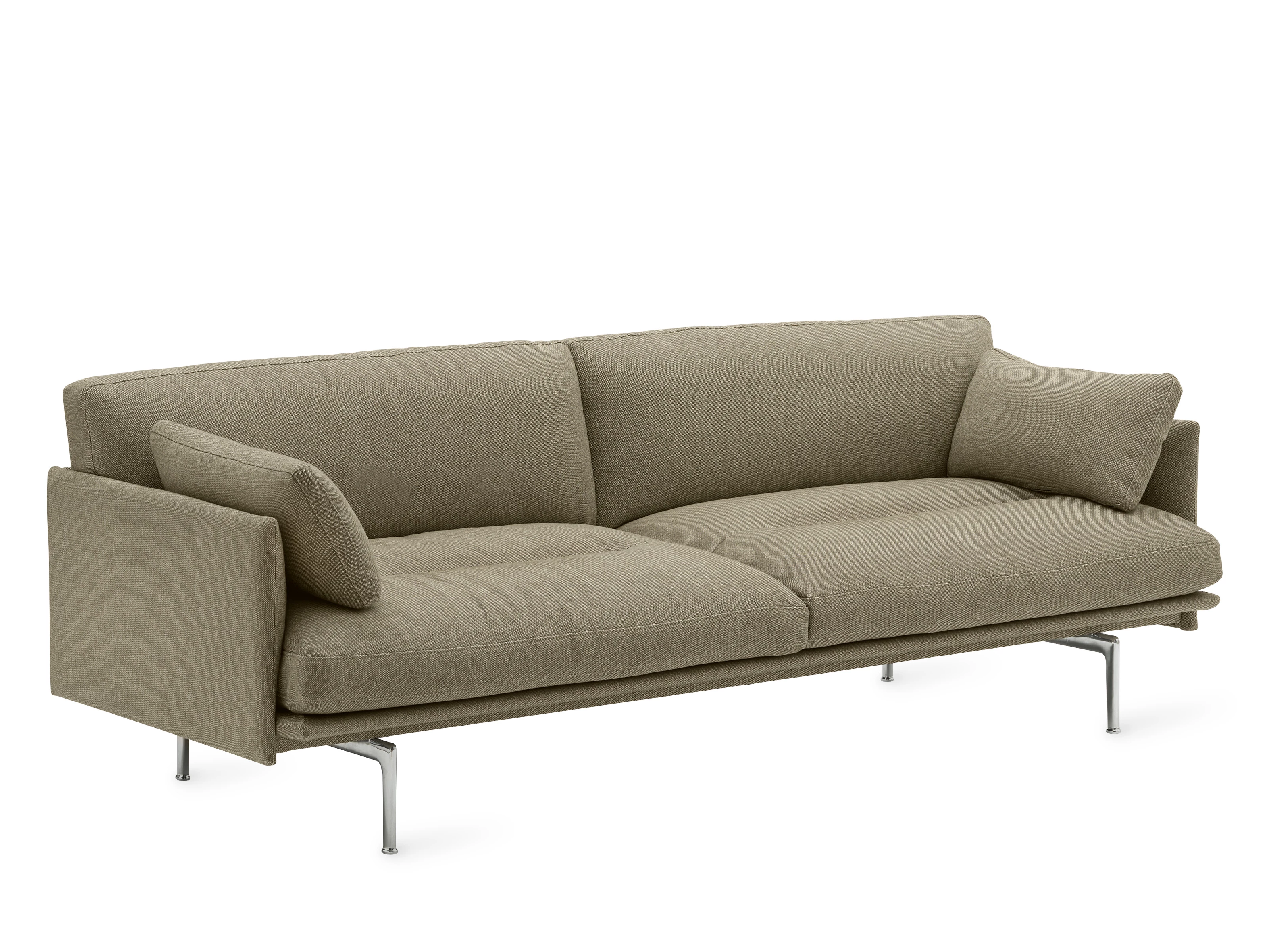 Drawing on the poised geometry of 1960s Scandinavian seating, the Outline Soft 3 Seater Sofa revisits classic design through a relaxed, more inviting lens. Structured lines, curved arms and a recycled die-cast aluminium base balance precision with ease, while plush, textured Kvadrat Sahco Clay upholstery introduces depth.