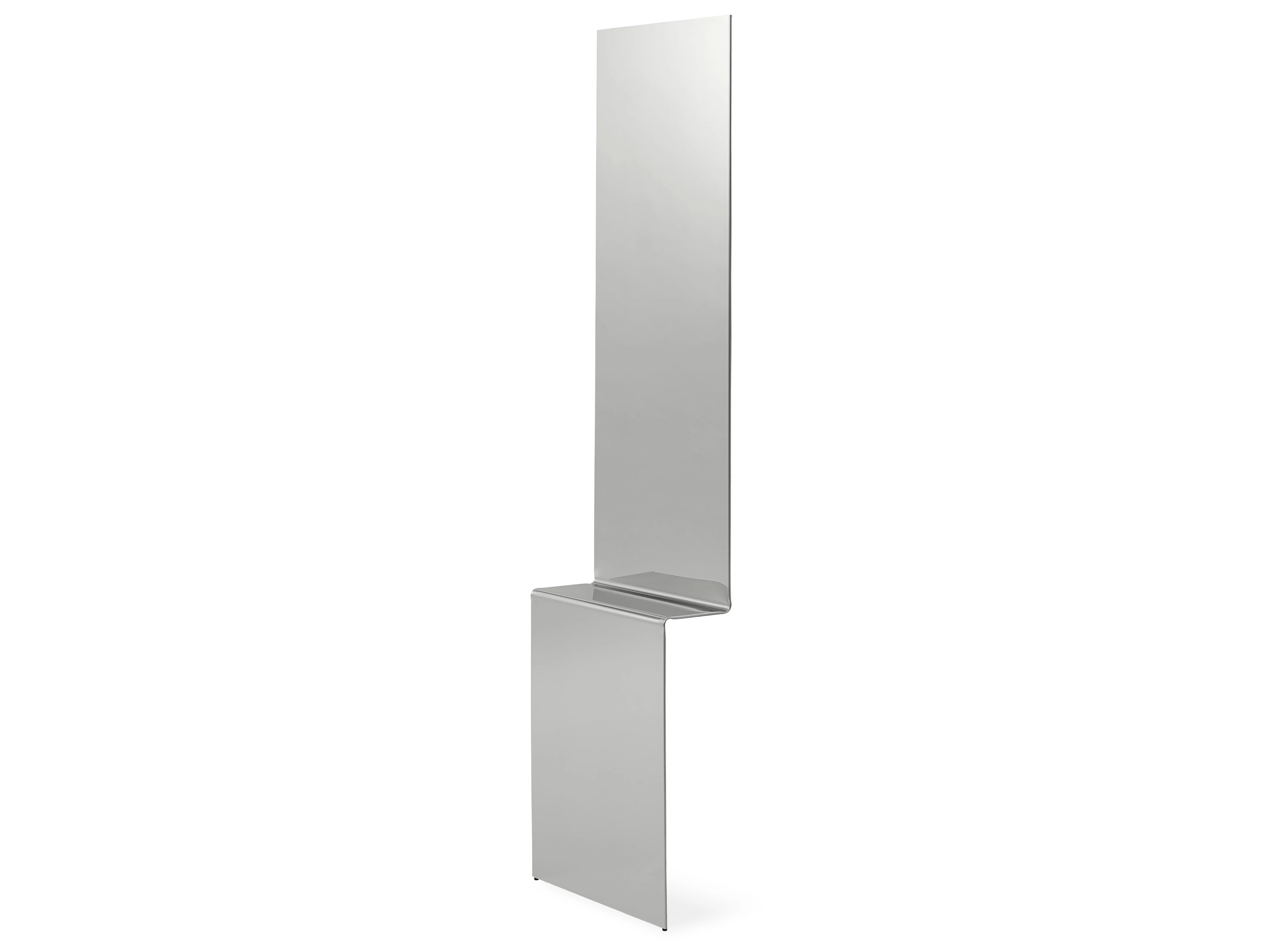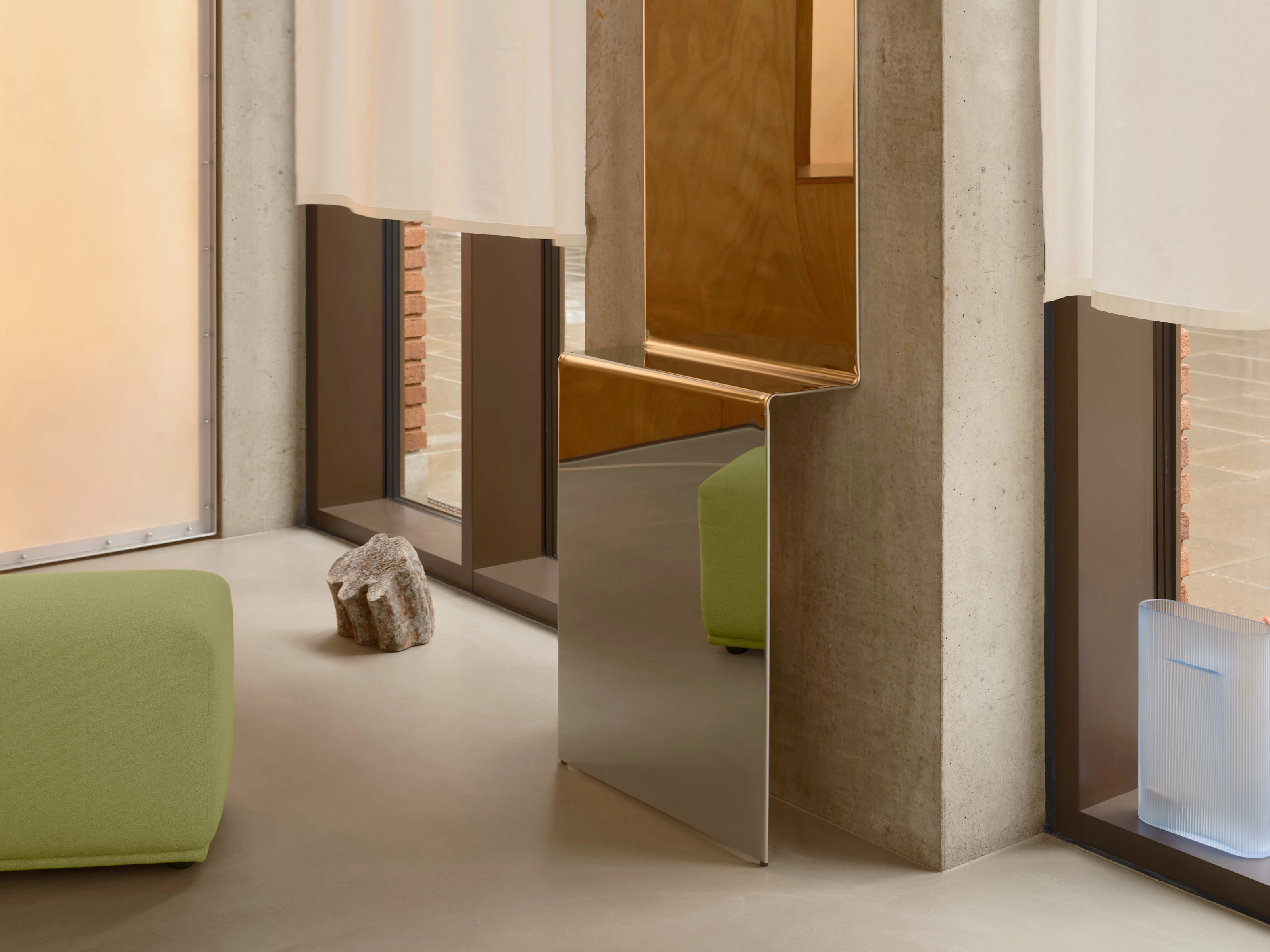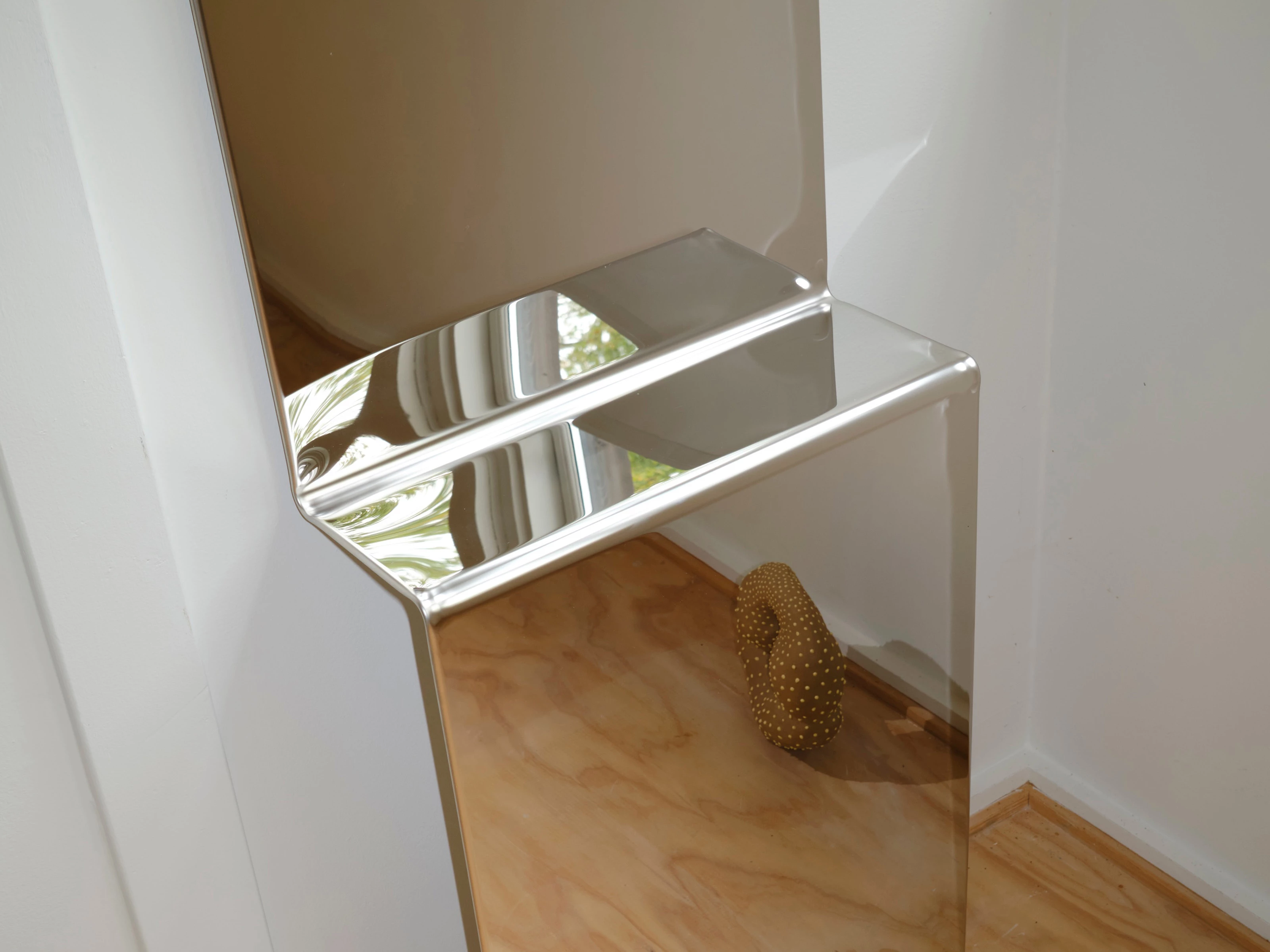 Conceived between Stockholm vision and Danish craft, the Pleat Mirror transforms the idea of a full-length mirror into an architectural statement. Formed from a single sheet of largely recycled stainless steel, its folded silhouette and fluid curves reflect a designer known for technical precision and sculptural clarity.
