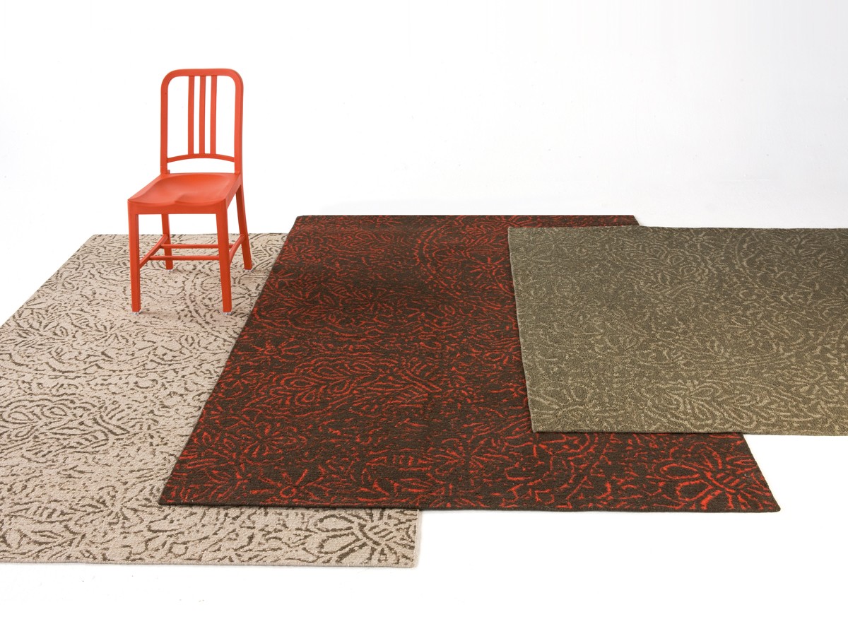 The neutral colours and floral patterns in the Antique Rug bring warmth to any room. The weaving technique used in this collection, known as hand knotted sumak, is the result of a great amount of work and imagination on the part of the Indian weavers. A thin braid is formed knot by knot, thus acquiring a distressed look, but at the same time producing a high-quality result.