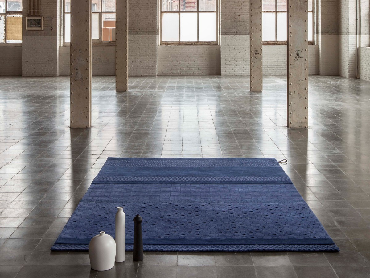 Neri & Hu took inspiration from the tile patterns of Shanghai streets, and the name of the collection corresponds to the Chinese character that embodies the essence of a city: the constant movement, dynamism and frenetic activity. The Jie Rug is also available in a green version.