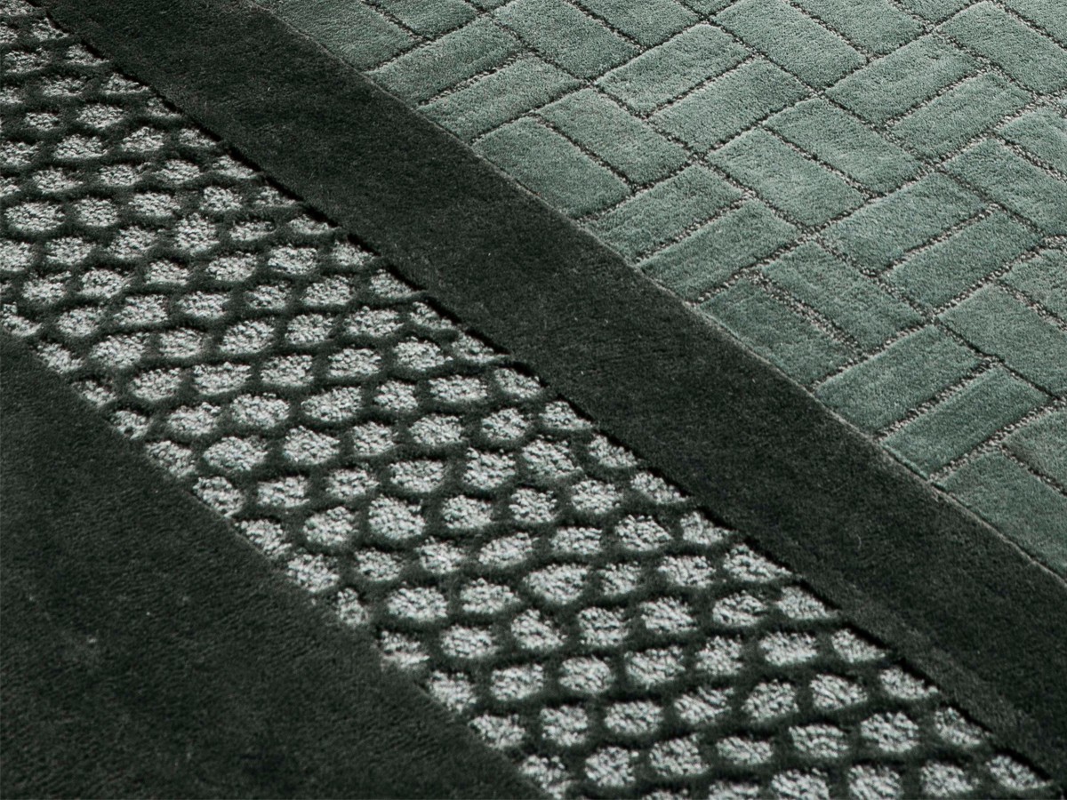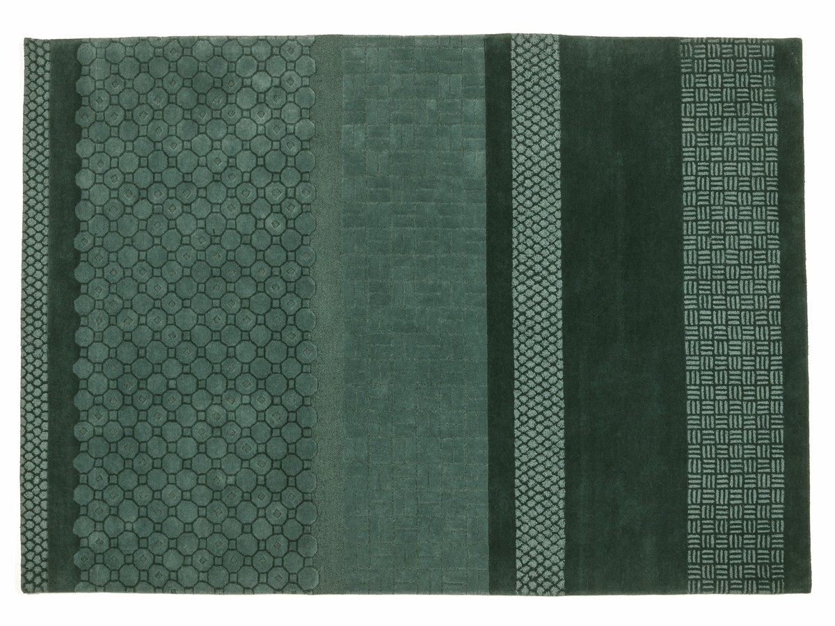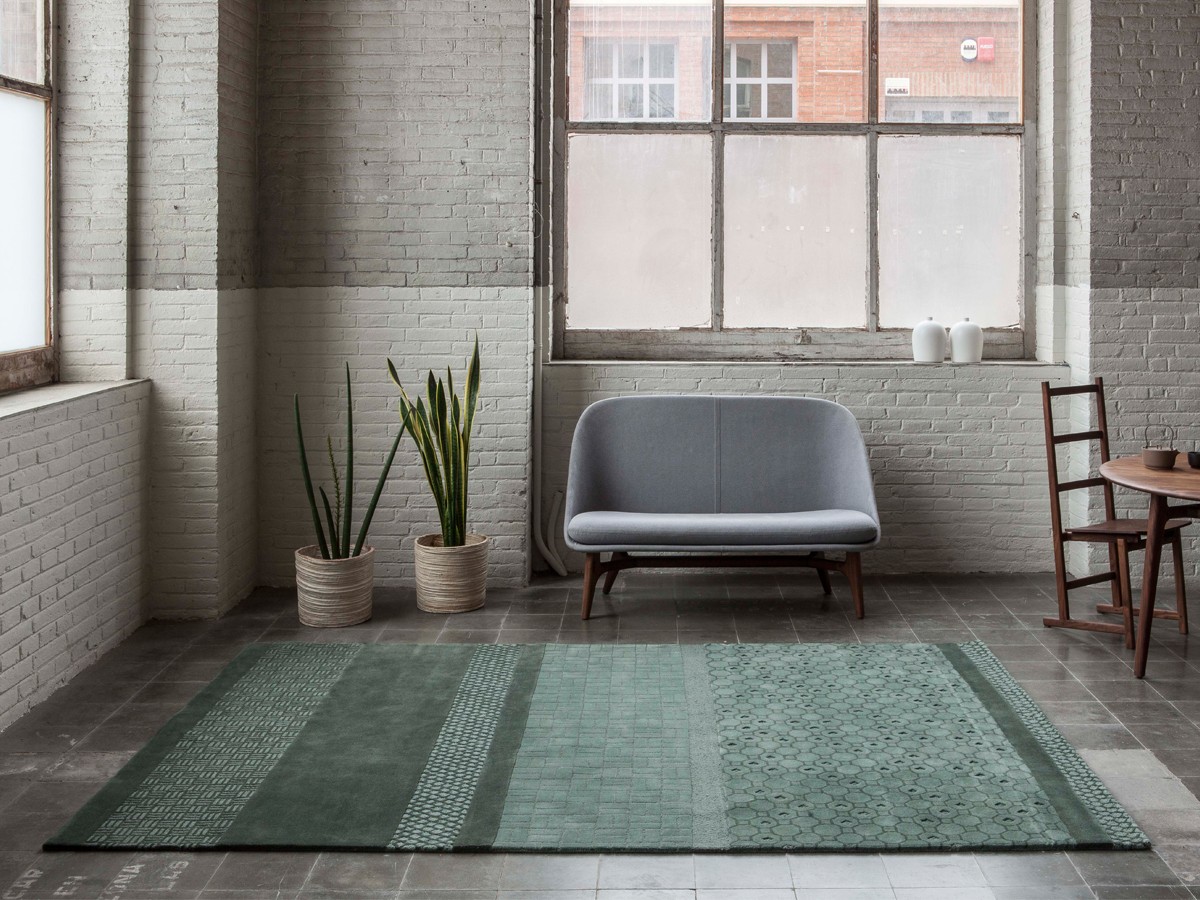 The name of the collection corresponds to the Chinese character that embodies the essence of a city: the constant movement, dynamism and frenetic activity. Jie is an eclectic hand-tufted rug designed by Neri & Hu with differing pile heights, made from 100% new wool. A diverse piece made up of a collection of different patterns and shades of green, the rug is a beautiful addition to an interior space. The Jie Rug is also available in a blue version.
