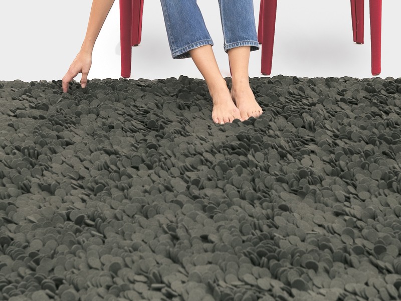 Nani Marquina, who studied industrial design at Escola Massana in Spain, found inspiration for her Roses rug in the fallen petals of the flower. The lyrical, witty surface provides a three-dimensional field of felted “petals” that invites touch.