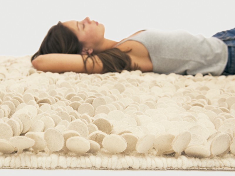 Nani Marquina, who studied industrial design at Escola Massana in Spain, found inspiration for her Roses rug in the fallen petals of the flower. The lyrical, witty surface provides a three-dimensional field of felted “petals” that invites touch.
