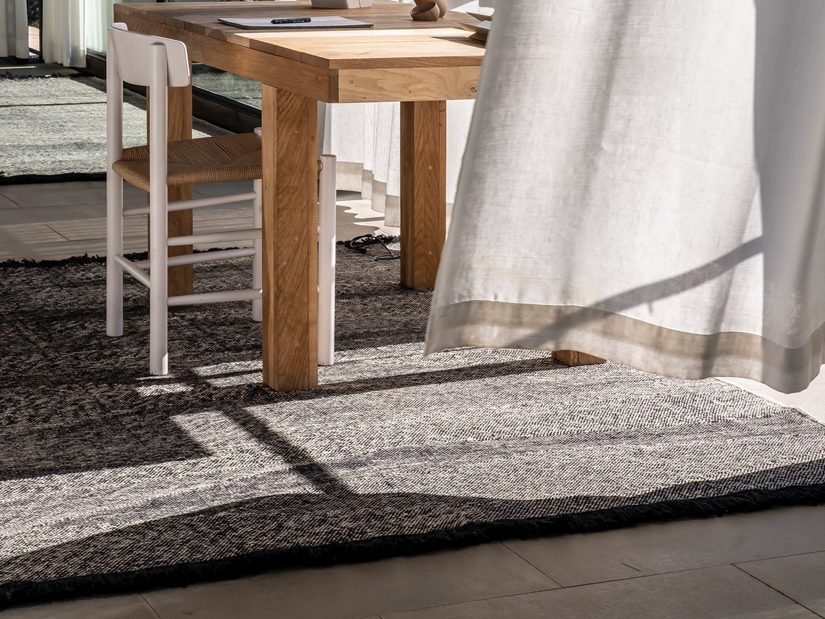 The team at nanimarquina have combined techniques traditionally used in kilts and dhurries to produce a unique and innovative piece. Tension applied to the weft and warp cause beautiful changes in the pattern, highlighting the hard work and craftsmanship that goes into every piece.