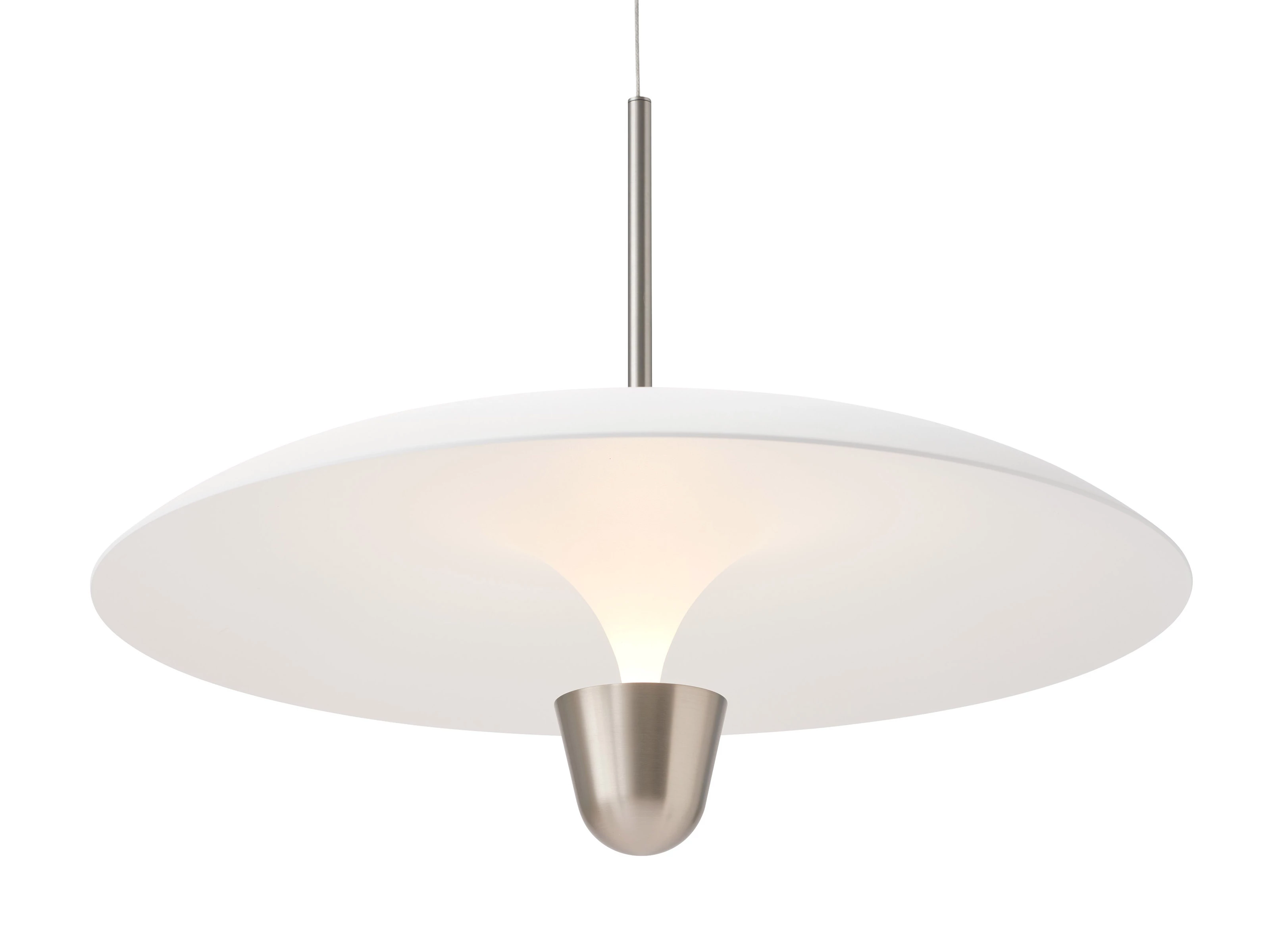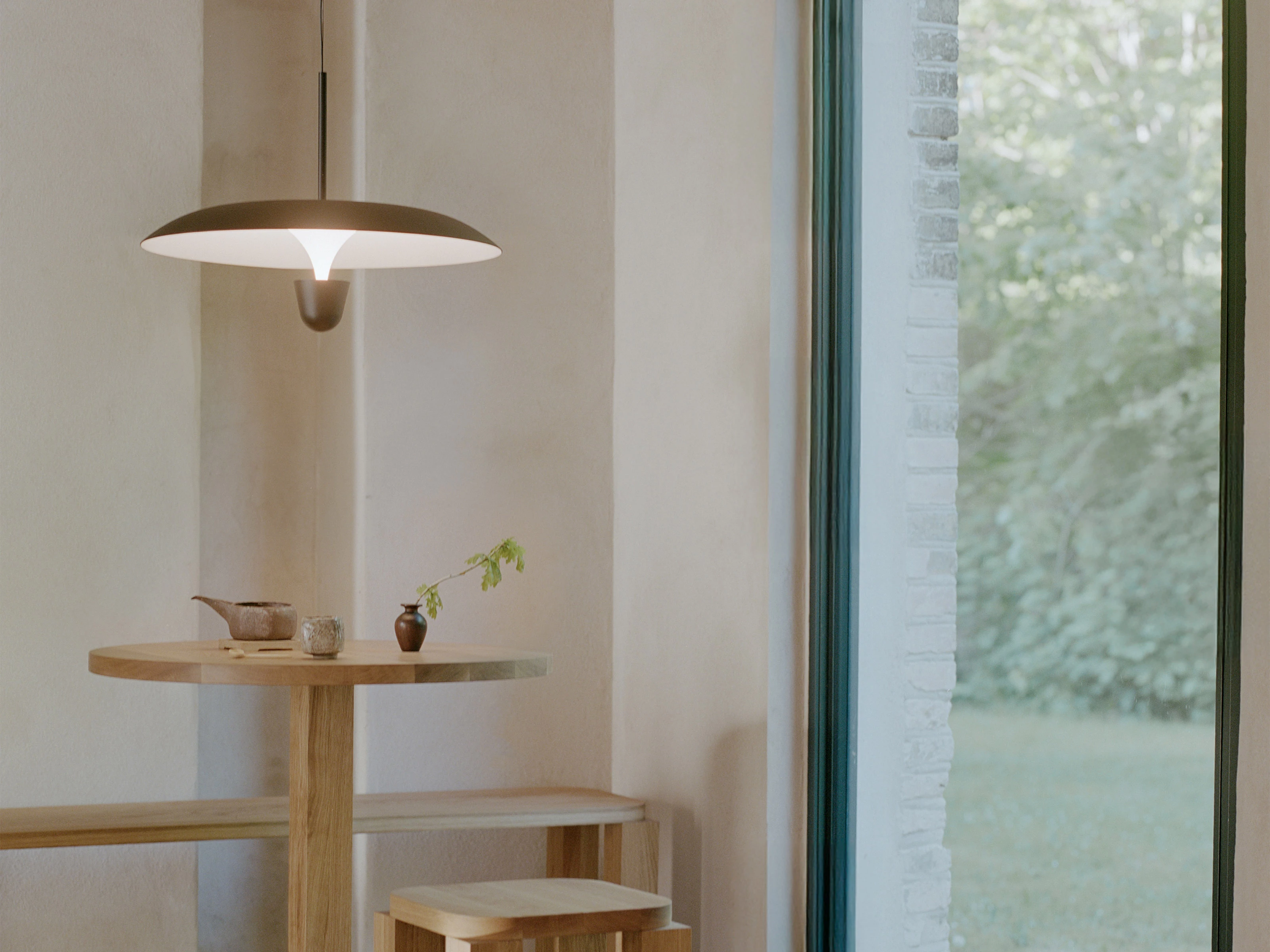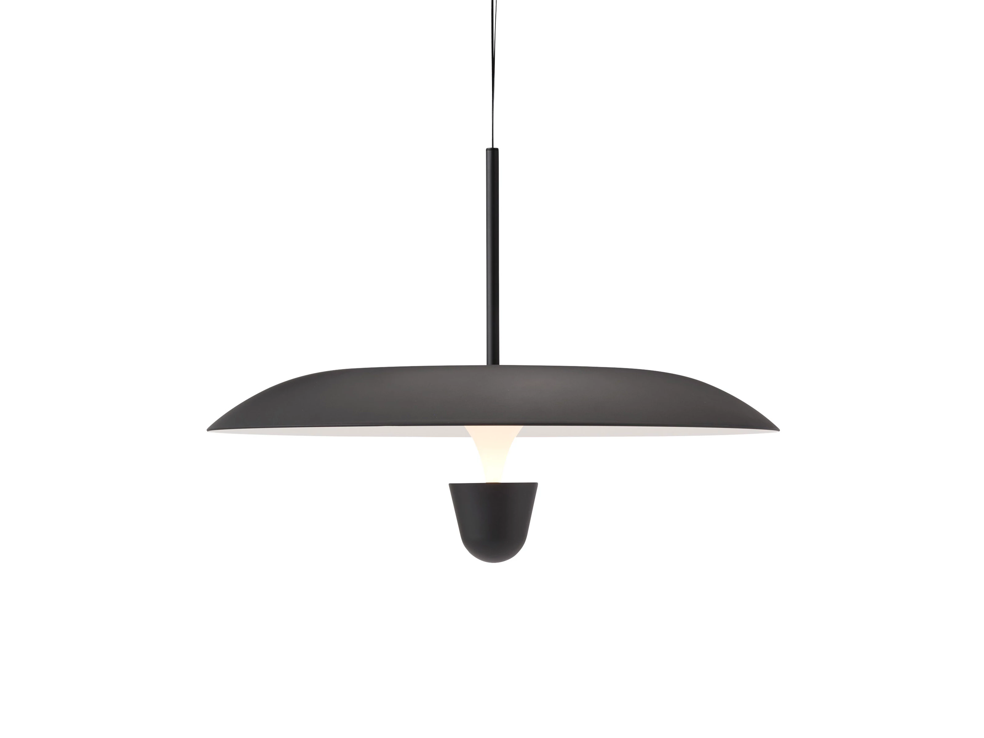 One of two pendant lamps in the Kantarell series, born from an exploration into how light travels through space, this smaller version is defined by its elegantly contoured shade and reflector that work together to project a focused, downward light - making it ideal for illuminating dining areas, kitchen counters and other intimate settings.