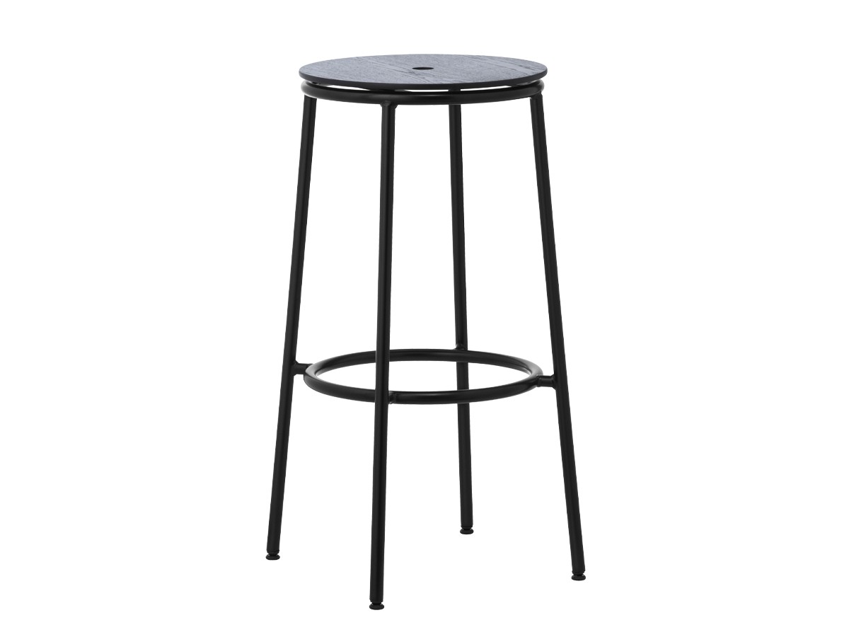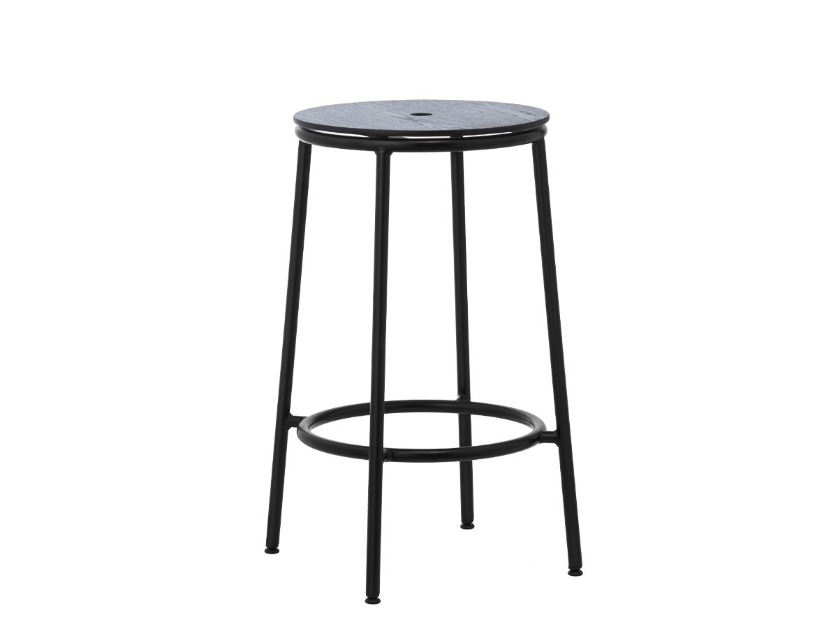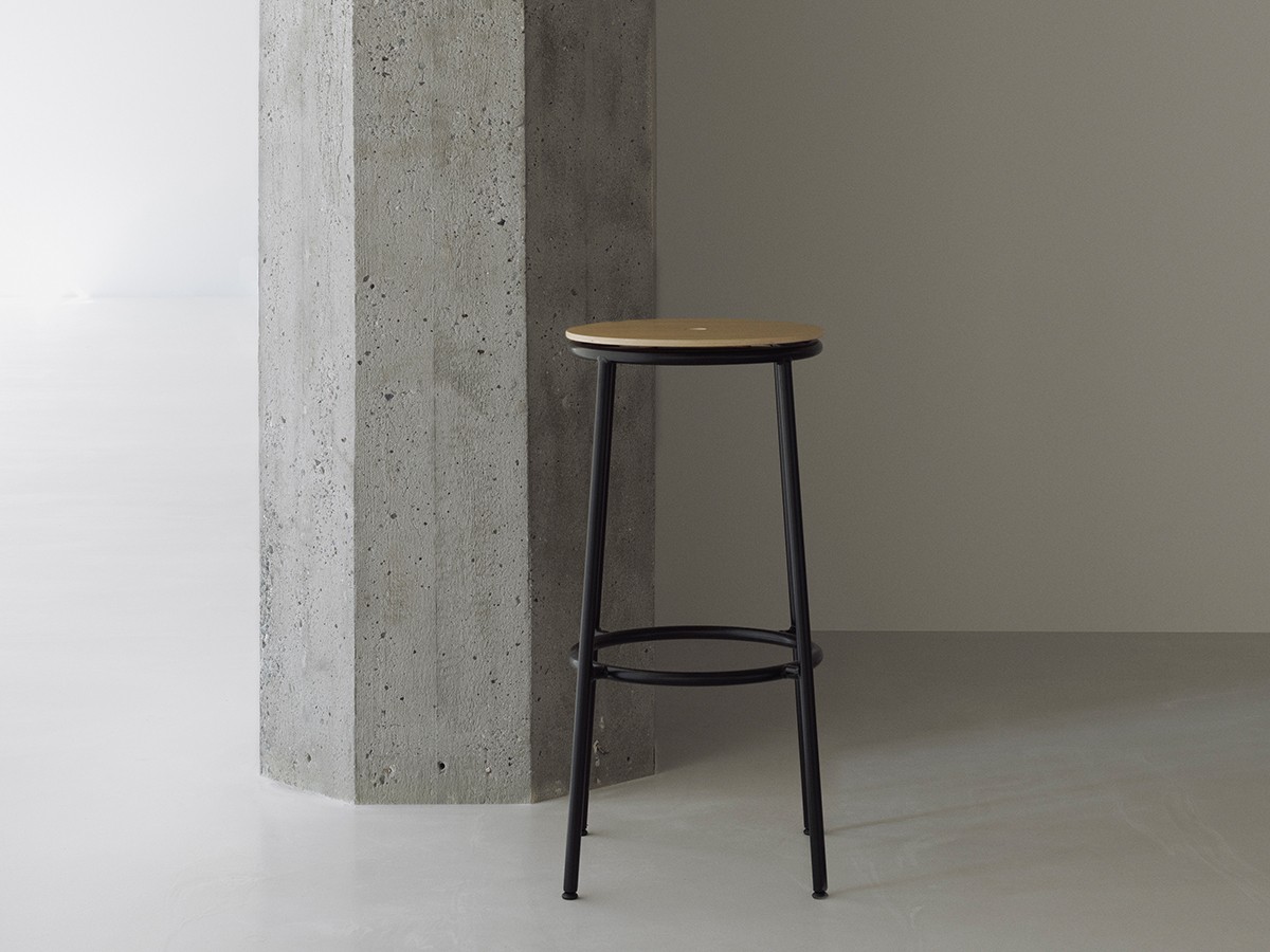 The Normann Copenhagen Circa Stool uses a distinctive circular motif to create a simple yet eye-catching aesthetic, from the rounded curve of the seat to the reassuringly solid footrest. A central hole has been cut into the seat allowing the stool to be repositioned with ease. The repetition of these circles adds a harmonious balance to the piece. The design is incredibly versatile, appropriate for a wide variety of settings, with the simple combination of oak veneer and powder-coated steel blending effortlessly into any backdrop. Also available with an upholstered seat.