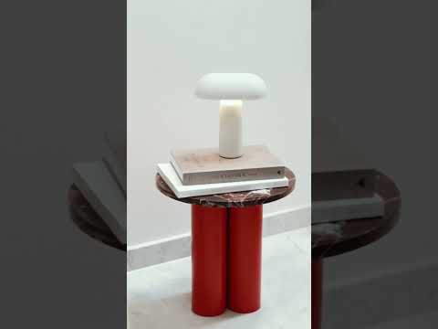 The three steel legs are generously proportioned, giving the table a delightfully playful silhouette. Perfectly circular, the tabletop is rendered in various stone finishes and is wonderfully tactile as a result.