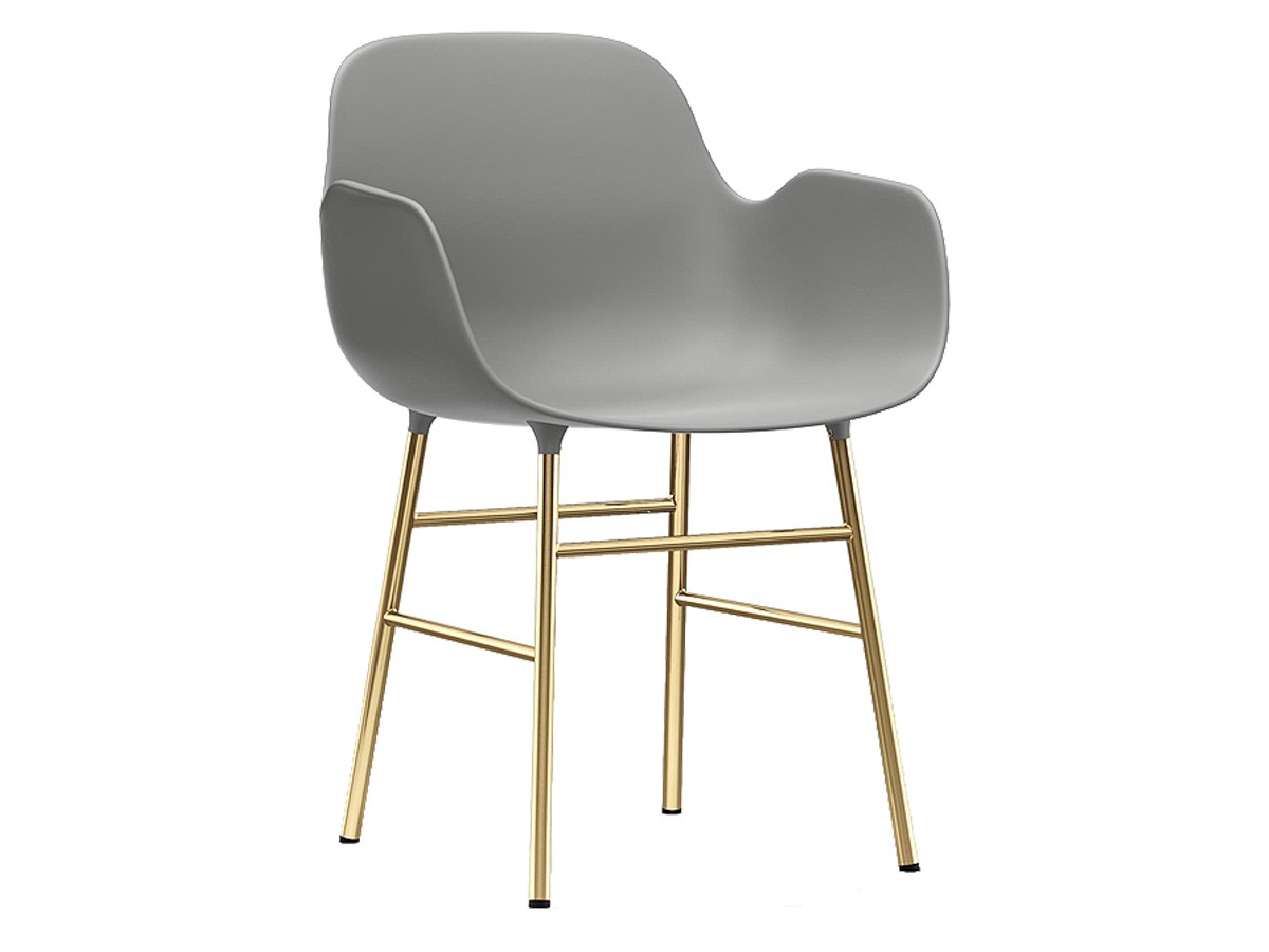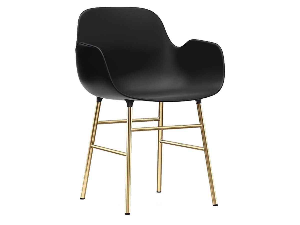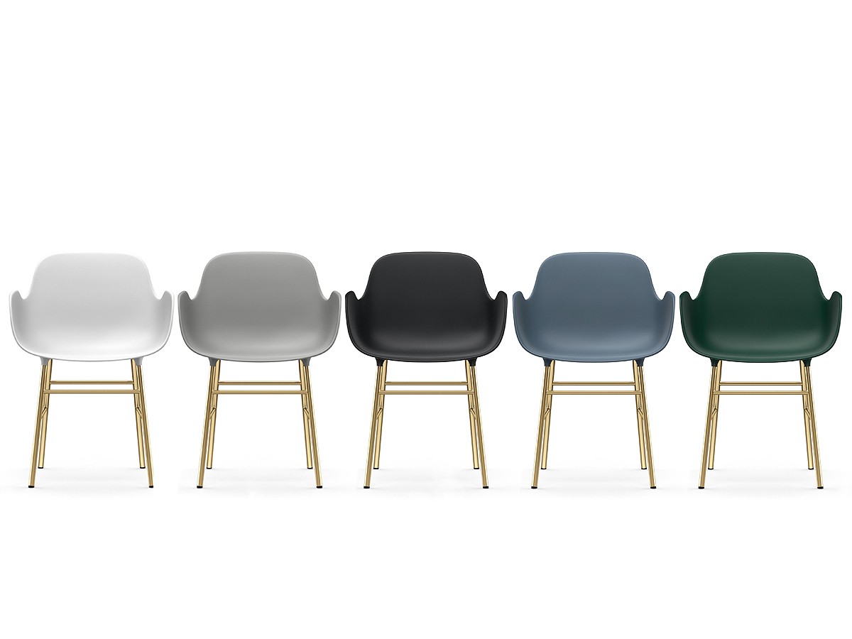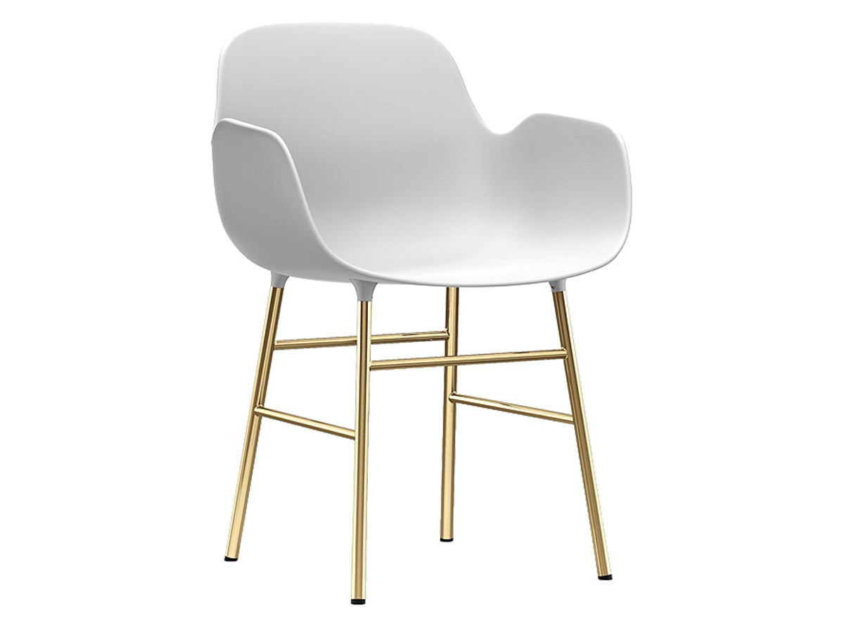 Combining function, aesthetic and simple design, the Normann Copenhagen Form Armchair is crafted with a brass frame blended with a choice of five distinctive seat colours. The moulded seat curves follow the body and ensure optimal comfort. Perfectly suited to furnish your modern dining room, home office or for use as an occasional chair.
