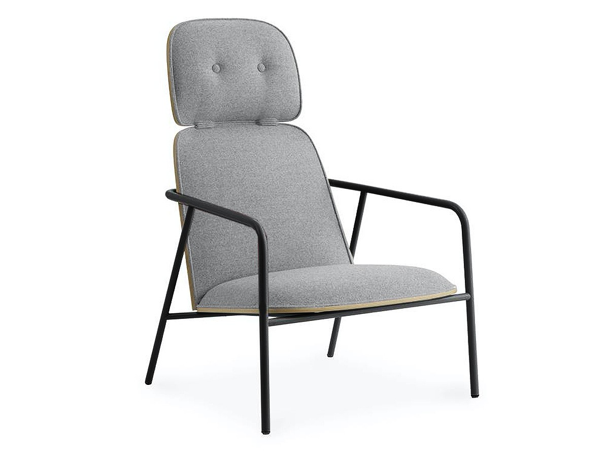 Part of the Pad Lounge Collection for Normann Copenhagen; a series of lounge chairs that attain their special character from the combinations of materials, tactility and shape, the Pad Lounge Chair - High embodies practical contemporary design. Made up of a solid steel frame, in which sections of strong oak veneer form the backrest and seat, it is organically beautiful, best utilised in a living, dining or communal space.
