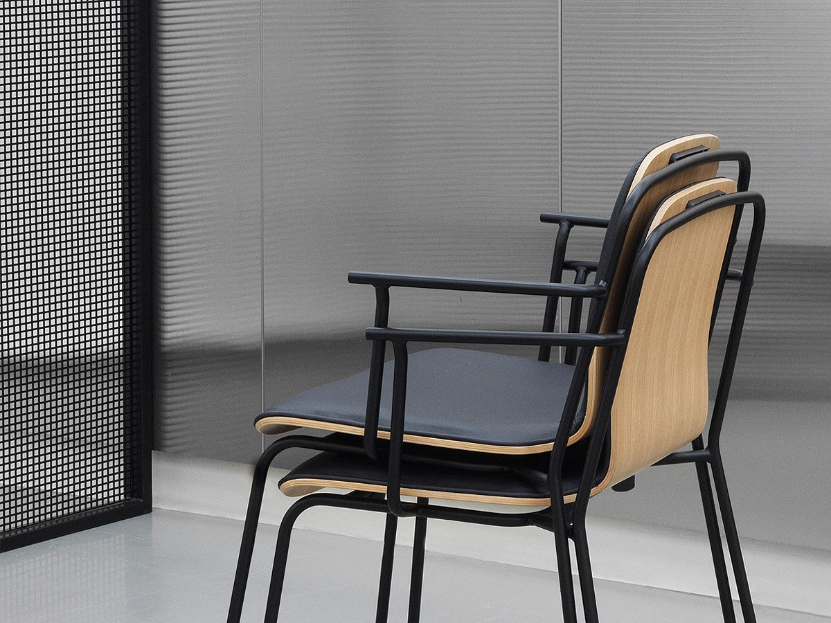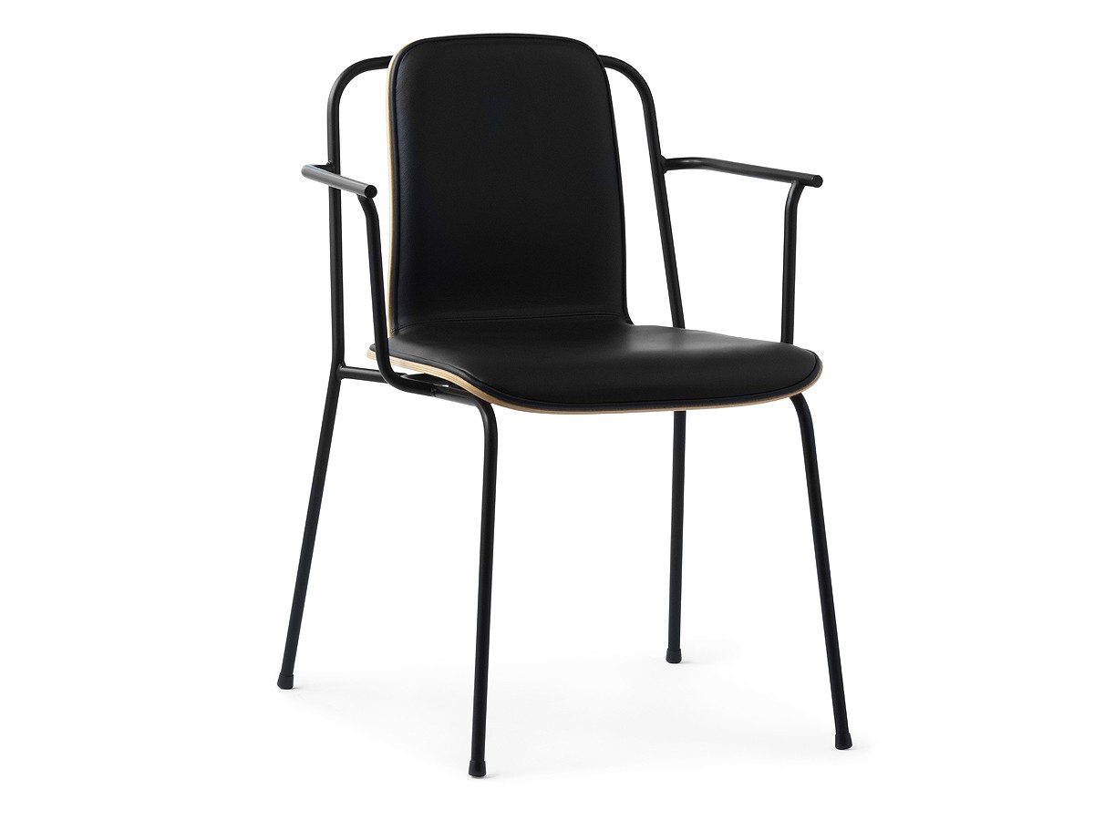 Not only providing the utmost comfort, the Normann Copenhagen Studio Armchair is also stackable and easily portable, perfect for storing when not in use and remarkably convenient when entertaining guests. Formed from a slender steel frame that supports an ergonomically shaped Oak seat and back, its geometric profile is full of character, further enhanced by its soft to the touch leather upholstery. Ideally utilised as a stand-alone piece in front of a desk or as part of a set around a dining table, this contemporary seating solution supplements a touch of style and practicality to your home.