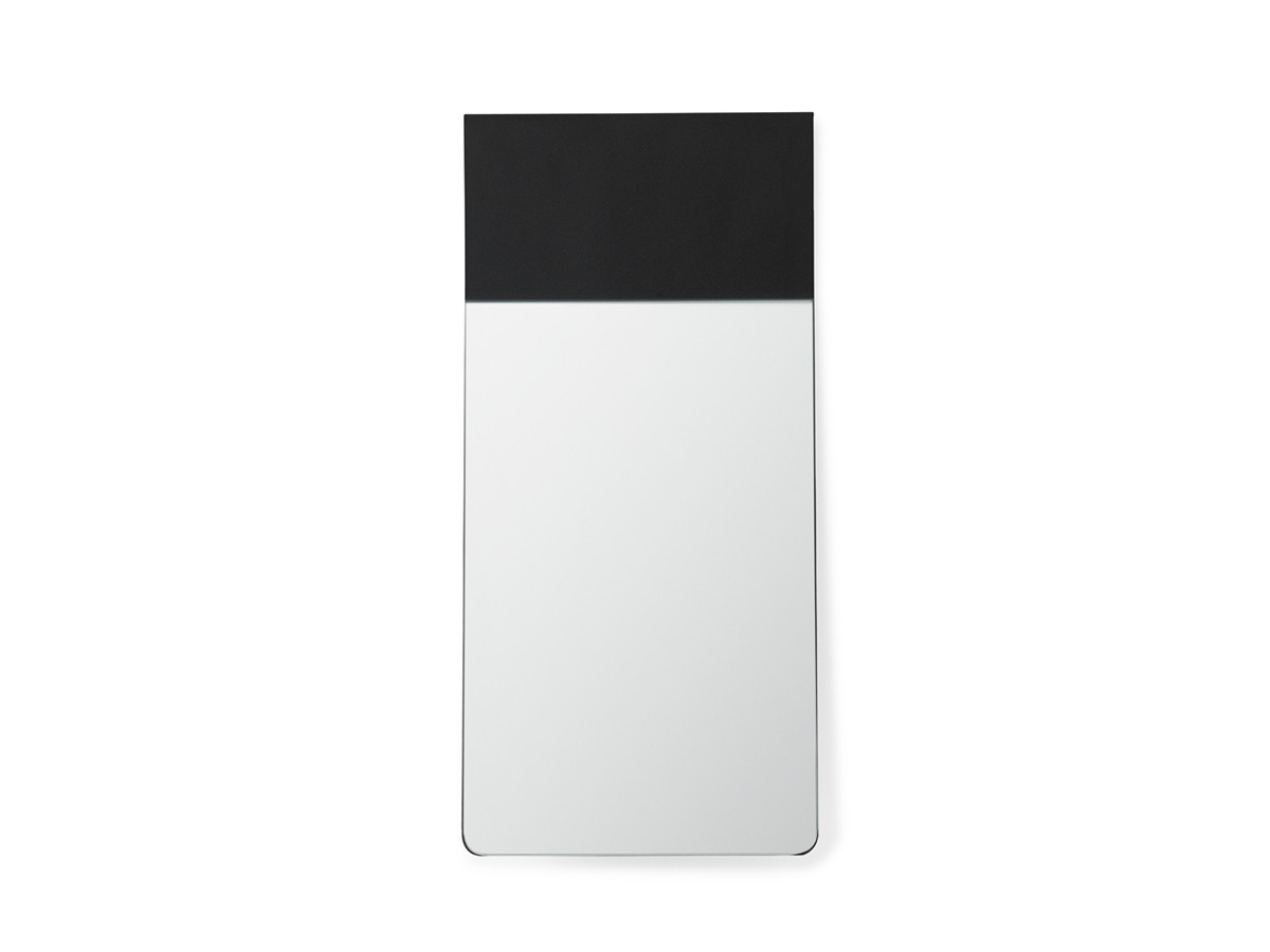 The way the mirror slopes outwardly from the wall takes the viewer by surprise and gives it an extra and unexpected dimension. The mirror is attached to the wall by the accompanying sliding mounting bracket and can be hung at both horizontal and vertical angles. The fixtures are completely hidden once the mirror has been mounted.