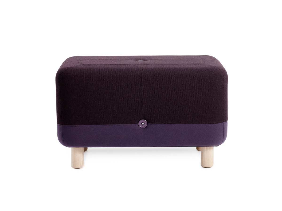 The materials of the Sumo Pouffe – wood, textiles and buttons – have been playfully combined to create a robust and practical item.