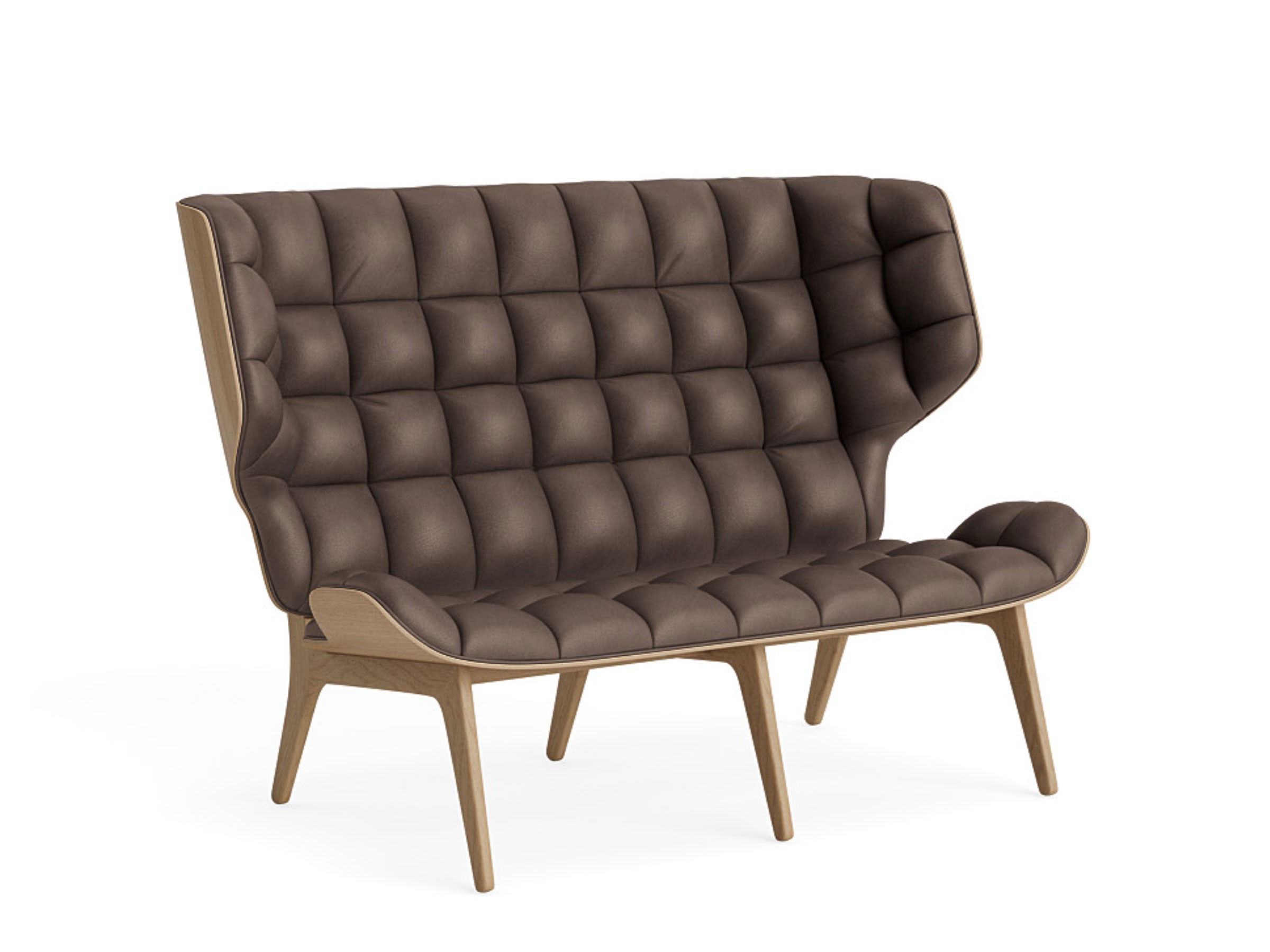 The Mammoth Sofa is an elegant and unique addition to any living space, available here in characterful vintage leather. It is the perfect sofa for living rooms, public spaces, hotel lobbies and modern workspaces, pairing well with the Mammoth Chair. The Mammoth Sofa offers numerous possibilities to create smart, intimate interiors with a warm and welcoming appeal. The sofa is handcrafted with a solid oak frame and seat and back of laminated oak veneer, with upholstery in aged, and weathered vintage leather. Woollen and Velvet versions are also available.