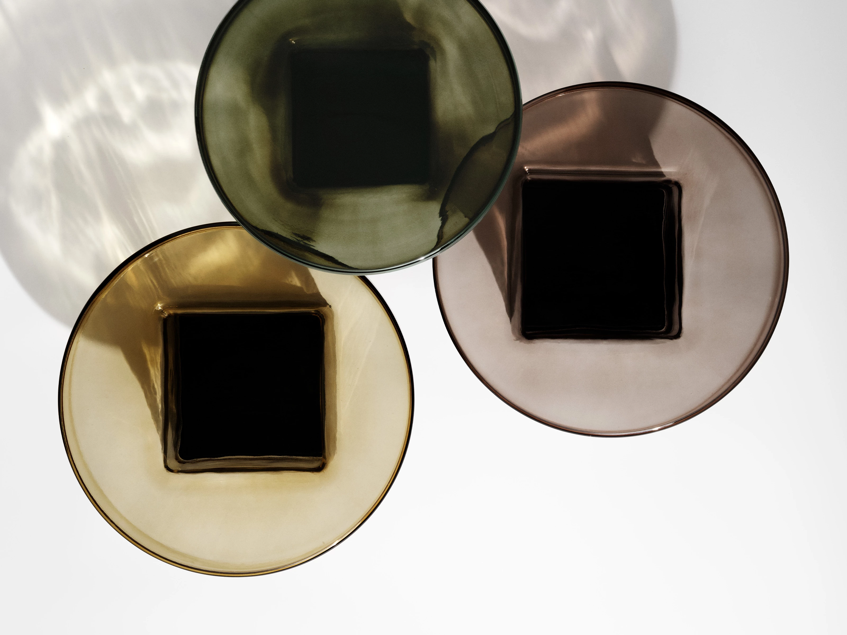Formed from a single piece of mouth-blown glass, tempered, then set on a dark-smoked oak base, it balances weight with lightness. Subtly tinted finishes, painted on the inside, add depth while keeping the outer surface smooth to the touch. Style it alone or layer with other Naked pieces from the NORR11 collection to create your own composition that exudes colour, luminosity and unique charm.
