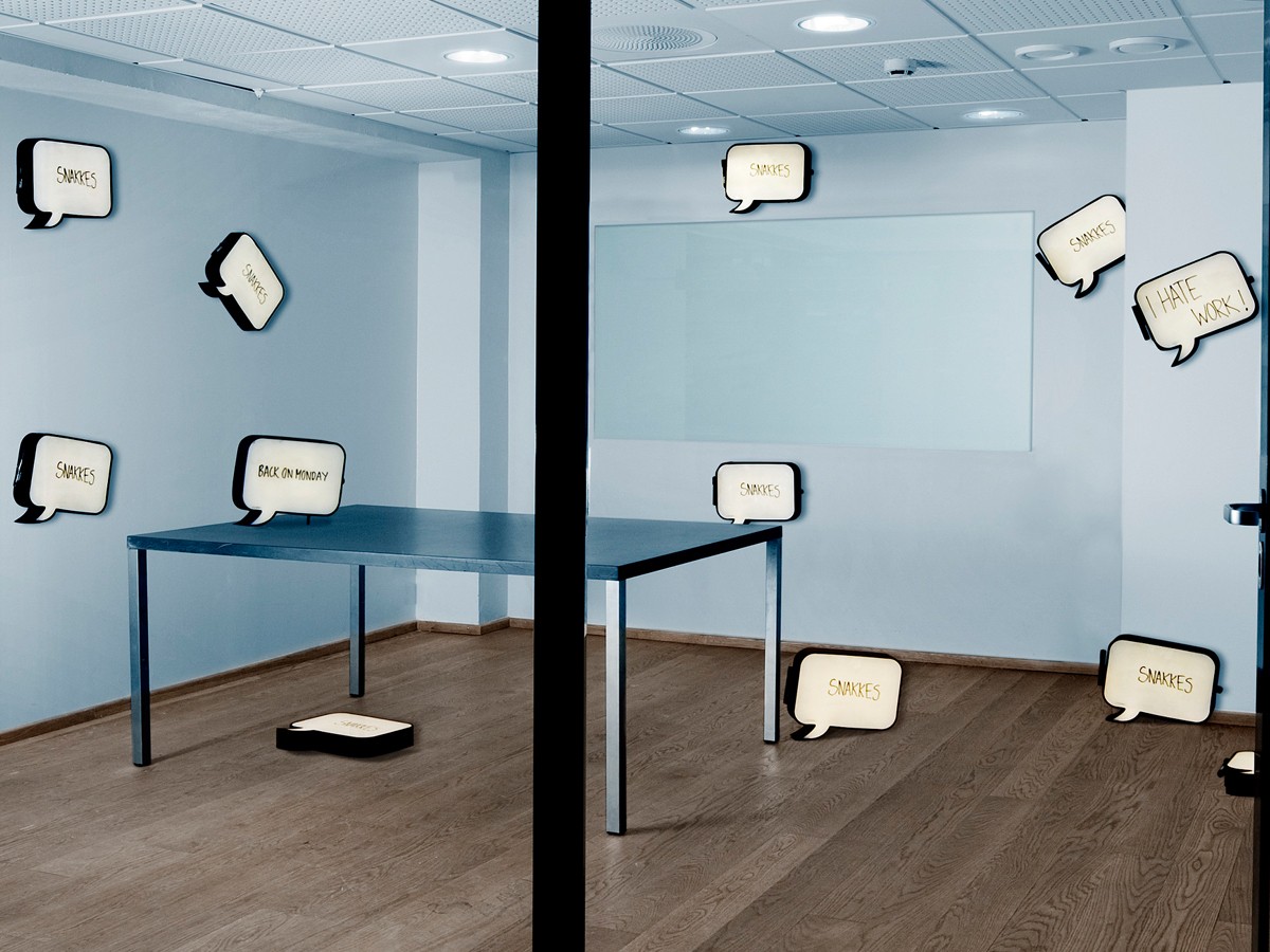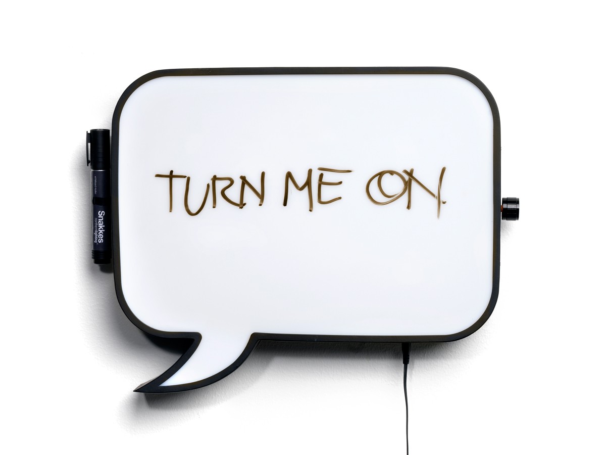 The Snakkes Wall Light, which means 'talk to you later' in Norwegian, is a playful design that can be used to write message on. When you want to write something new, just wipe clean and start again!