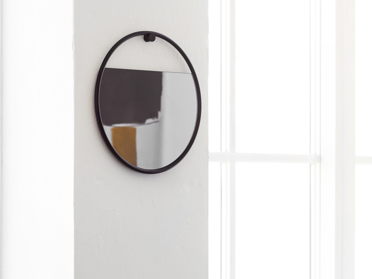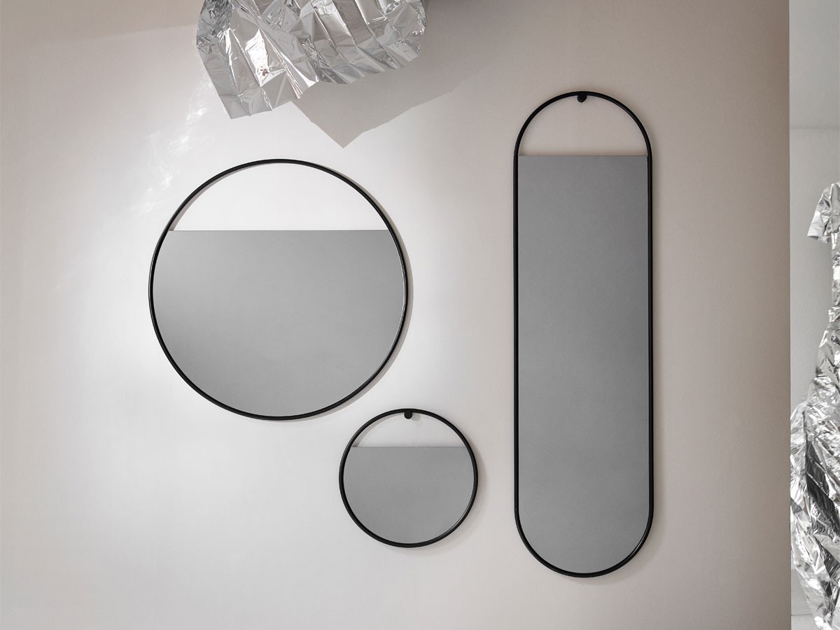 The Peek Mirror reflects the need for diverse accessories that do more than solely decorate a room. Available in two round sizes, the steel matt black frame forms a crisp outline around the delicate tinted glass, framing the reflection within. The mirror beautifully hangs from a thin metal peg, diffusing soft reflections and ambient light around a room from the coated silver sheen on the surface. Also available, the Nothern Peek Mirror - Oval.