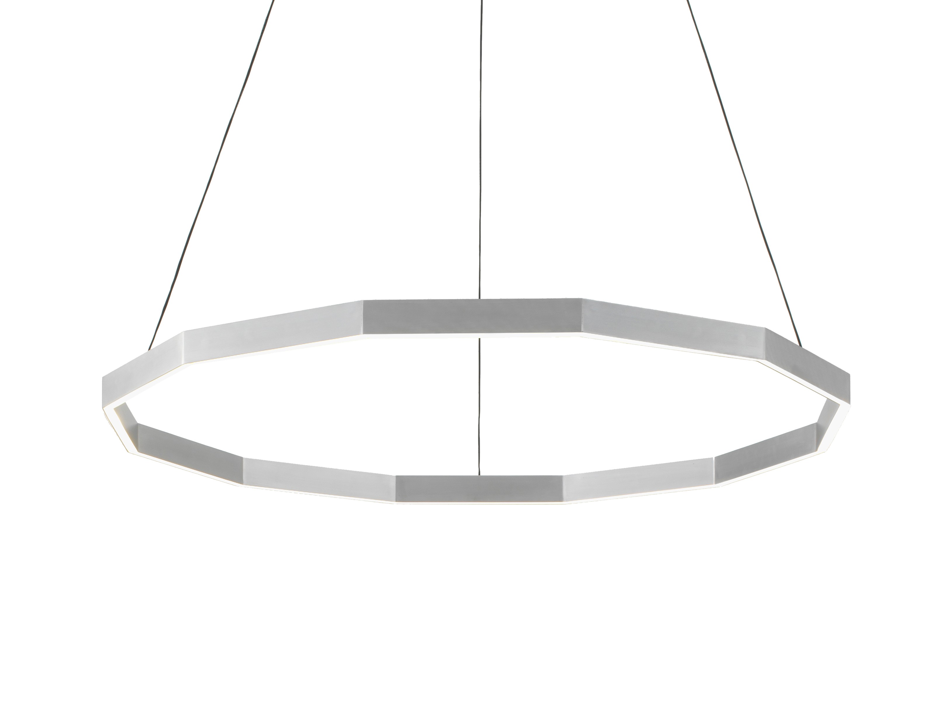 With a hollow dodecahedral shape starkly outlined in a metallic frame, the Midnight Pendant Light makes a fantastic centrepiece for any interior space. Hanging from almost invisible wires, the shape appears to float in the air, gently diffusing light through a recessed frosted acrylic diffuser. The innovative geometry and expert craftsmanship gives the light a striking aesthetic.