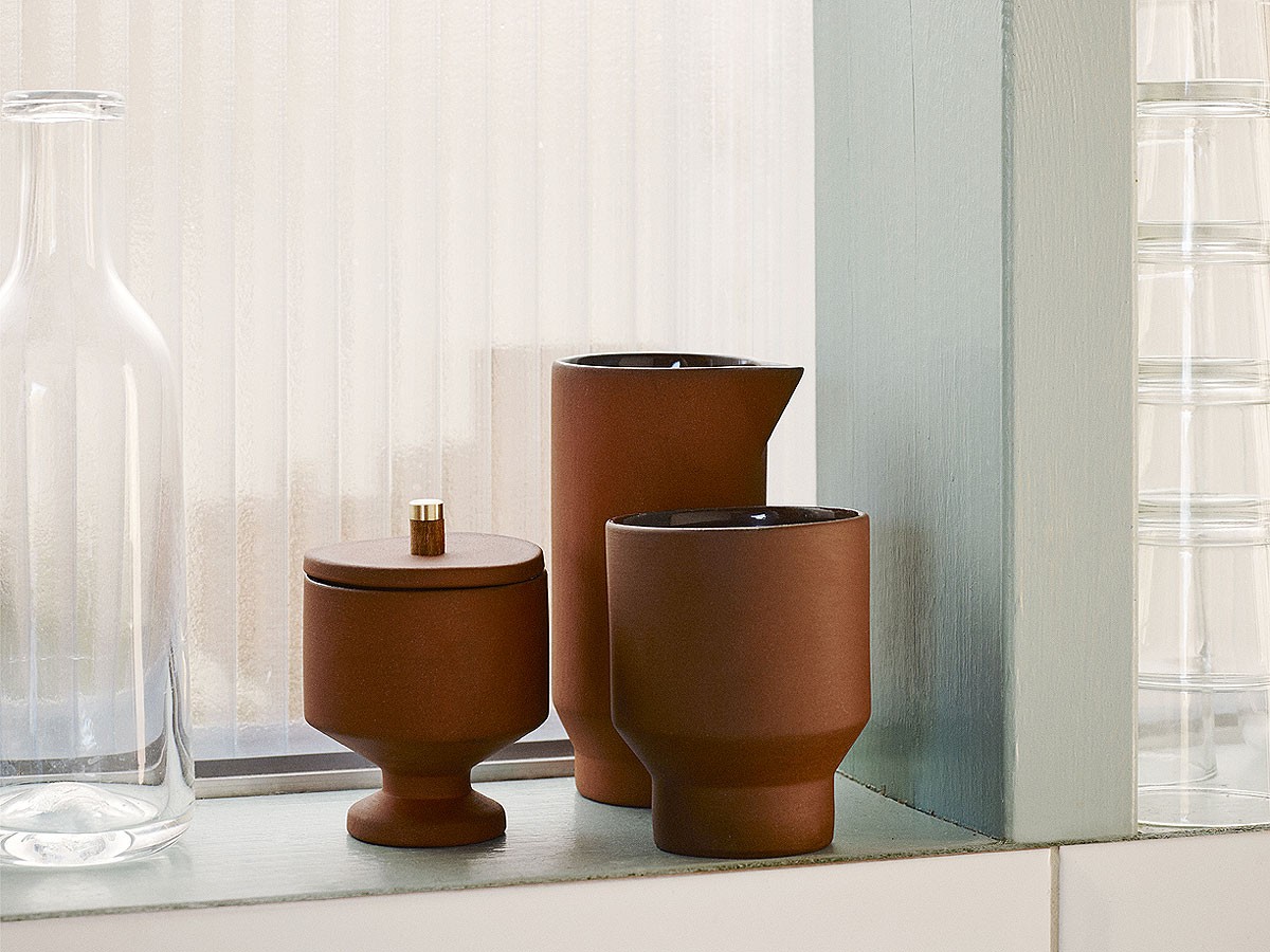Each low-fired Mug is uniquely handmade, resulting in charming shade and colour variation. Both aesthetically appealing and practical, the tapered foot of the mug allows for easy stackable storage, taking considered inspiration from the bygone amphora pottery of Greek - Egyptian tradition. The rustic styling, lined with a water-resistant gloss interior perfectly complements contemporary home environments, sip a cup of hot tea or coffee with this perfectly Scandinavian vessel. A complimentary accompaniment to the Edge Teapot and Edge Milk Jug.