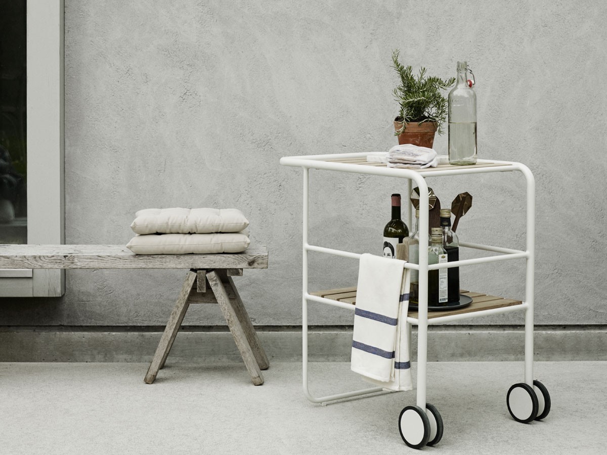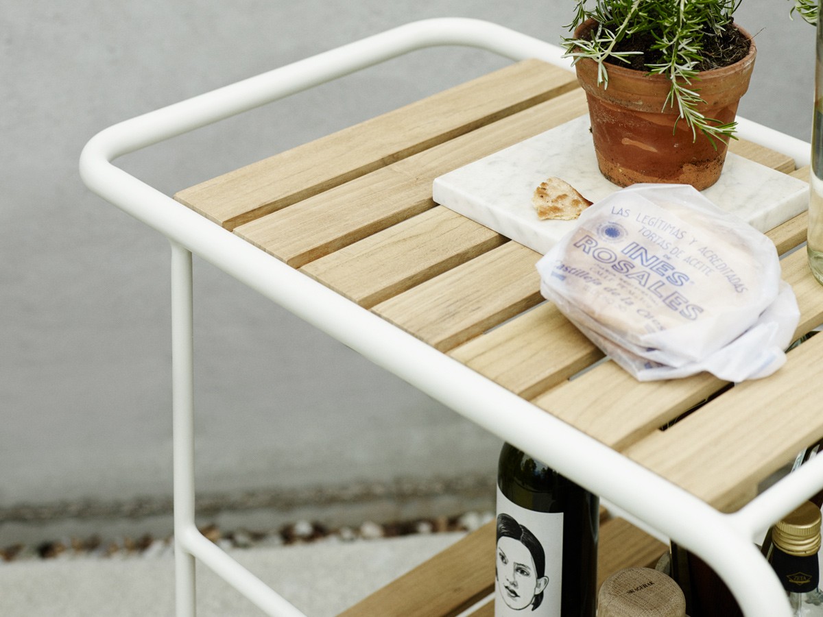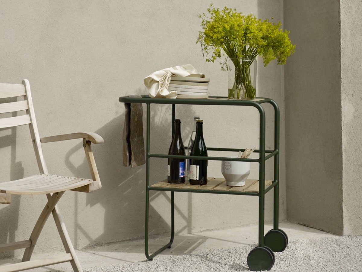 The powder-coated aluminium frame makes the Fuori Serving Trolley light and architectonic in its structure, allowing for it to be easily repositioned and moved around your space. If untreated, the teak will slowly patinate over time to reveal a silver-grey glow, giving the Trolley a more timeless Scandi feel. The frame itself is available in both Silver White and Hunter Green variations.