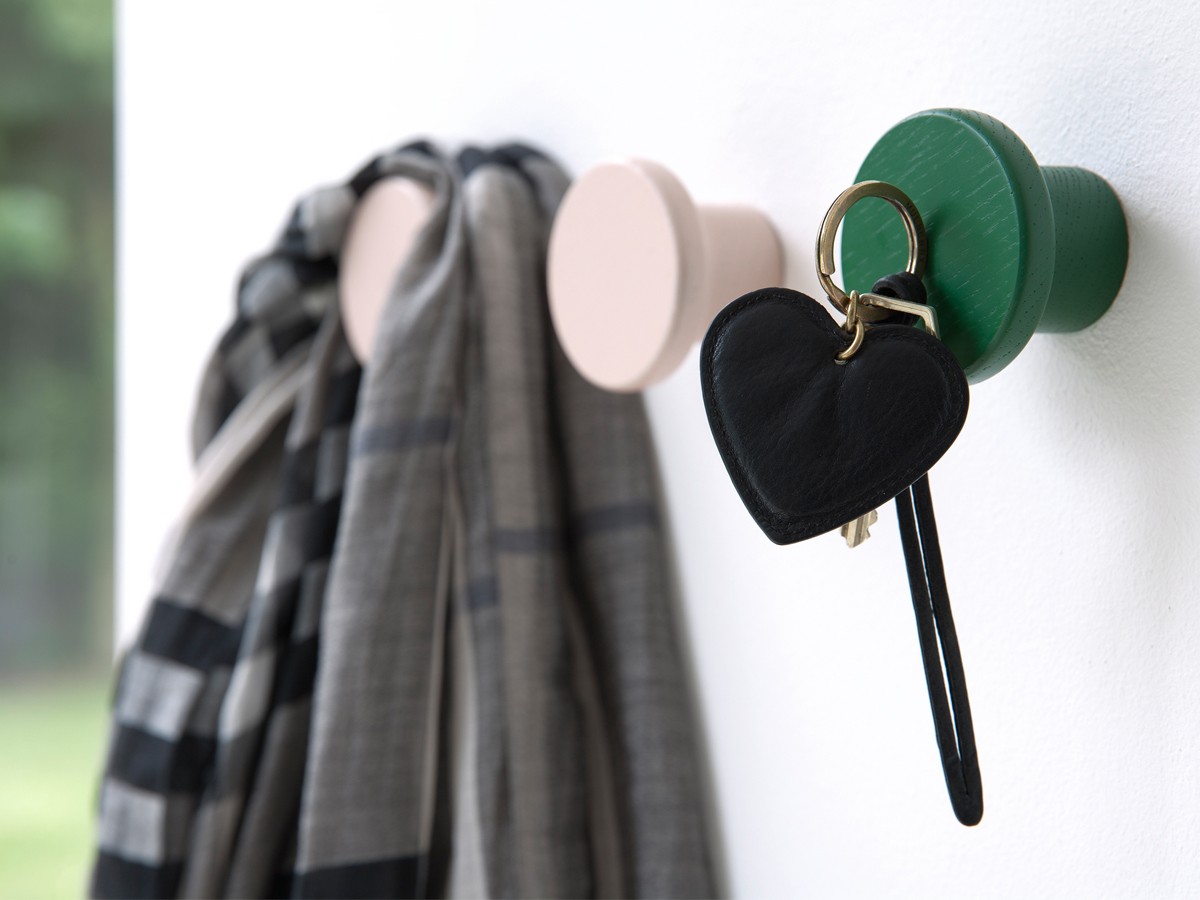 The wooden hook has a small but strong magnet inside its core that ensures multiple possible uses. So use Knap as a clothes or key rack in the hall, as a knife magnet in the kitchen or as a spot for important items in the office. The round shape fits naturally into every home and stands out as a decorative element whether it is in use or not.