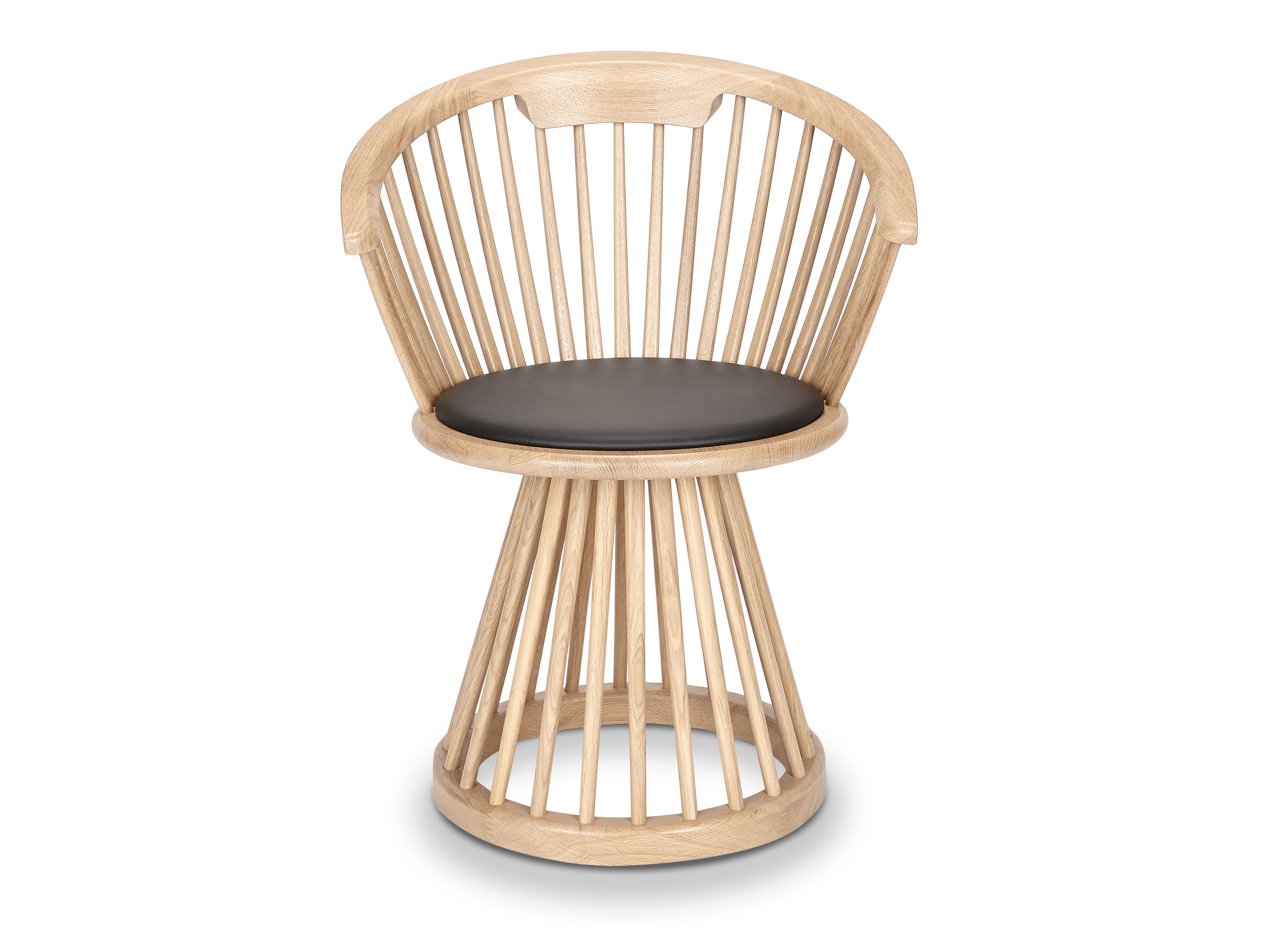 The Fan Dining Chair is comprised of machined wooden spindles that wrap around the seat, connecting it to the base of the chair. The spacing of each spindle reacts with light in a way that creates unique forms and shapes through refraction, resulting in dazzling shadows and distorted beams of light. Further adding to the appeal of this otherwise intriguing seating solution.
