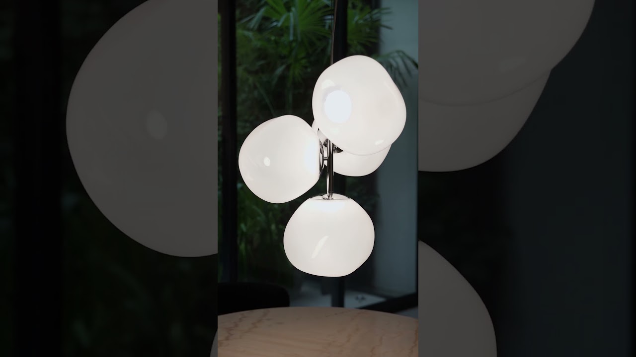 Embodying a captivating blend of light and reflection, the Melt Chandelier Mini boasts four blow-moulded opalescent shades radiating from a steel stem, available in a polished silver or gold finish. Its reduced size is ideal for adding a sophisticated touch to smaller spaces - the semi-translucent orbs exude an ethereal quality by day and transform into luminous spheres of energy by night.