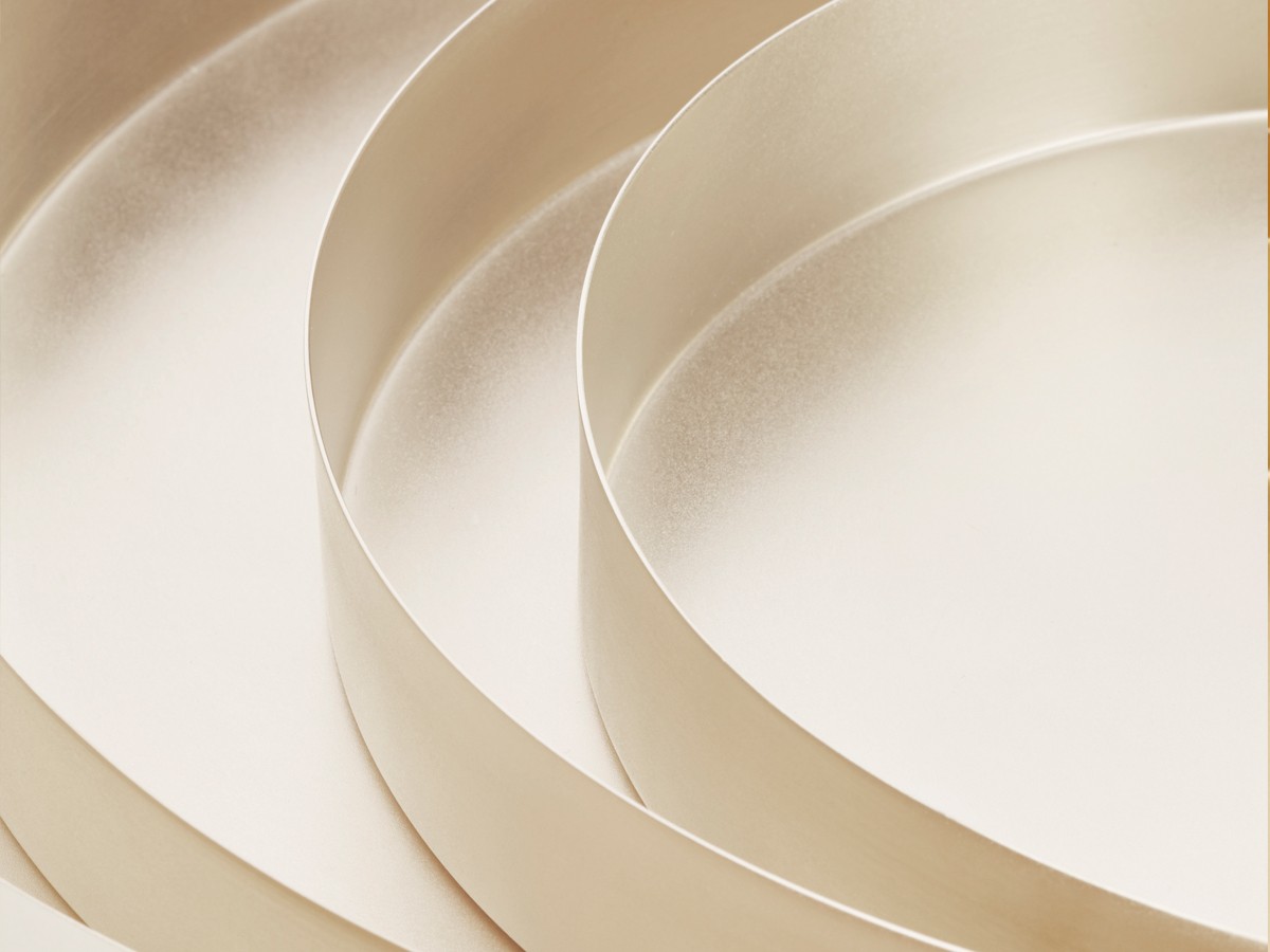 Each tray is made from one sheet of solid brass which is pressed into a mould.
