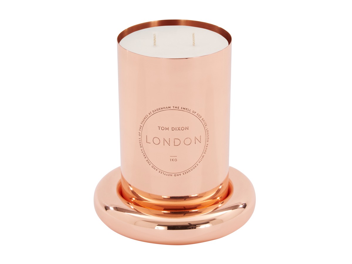 Housed in polished and lacquered copper-plated stainless steel, with a matching pressed and welded lid, the candle’s silhouette evokes a Docklands mooring post. Larger than the standard London version, the candle is presented in copper-foiled gift packaging.