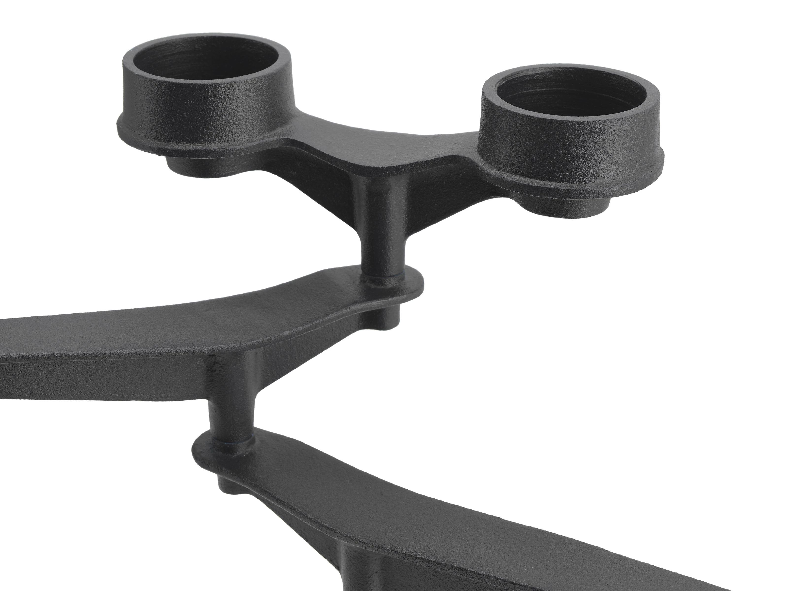Made from cast iron, the Spin can cleverly produce infinite configurations and personalised styling with a design reminiscent of 1950s mobiles and cantilever mechanisms of dockside cranes. This sleek candelabra from the renowned British designer can hold both tea lights and tapered candles, providing a warm touch of ambience to your dining space, living room mantelpiece or display console in the hallway.
