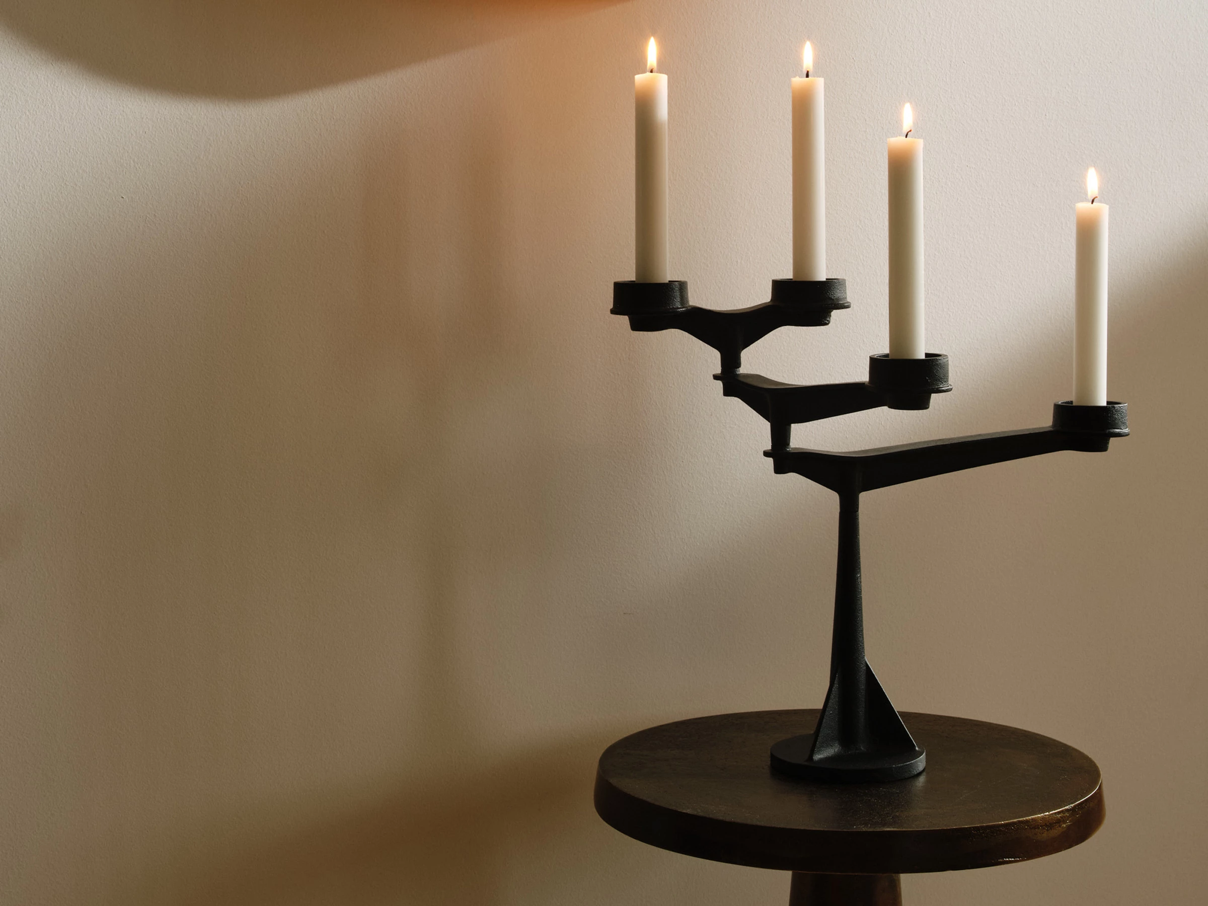 The Spin Candelabra Mini evokes old-world elegance through its classic branching silhouette, yet its clean lines, angular form and kinetic functionality lend a distinctly modern edge.