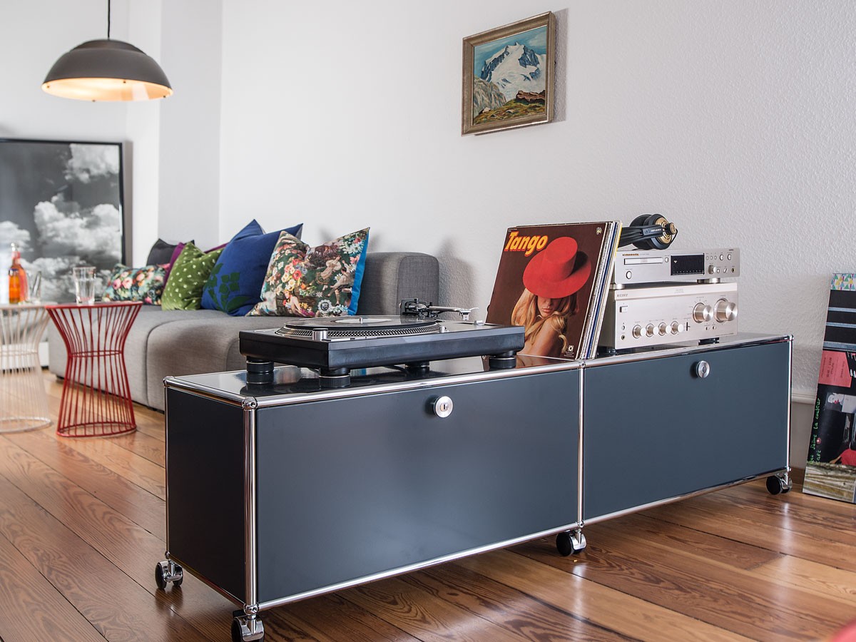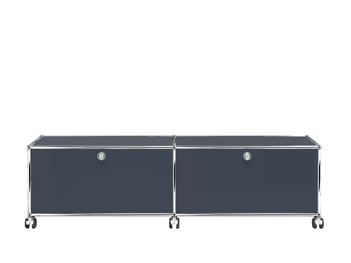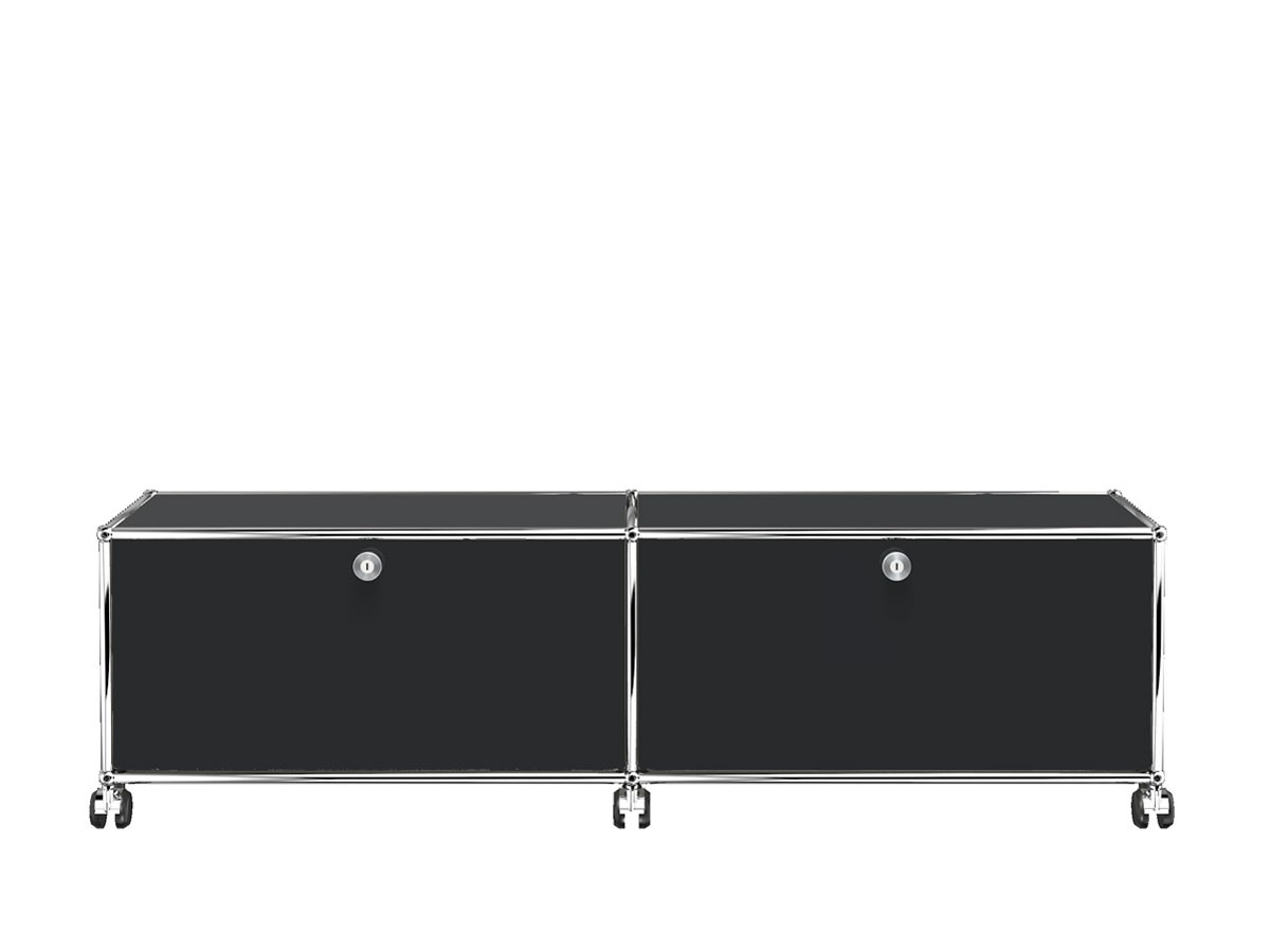 With unparalleled innovation, genuine quality and true style, the Haller Media Unit - Configuration 1 effortlessly adapts to any room within the home. Featuring a compact design with castors and two drop-down doors the addition of the media unit adds endless storage and display possibilities whilst adding colour and style to your interior. Designed using the famed Haller system - flexible steel modules and elegant ball connectors, the media unit can be built upon to create a bespoke version tailored directly to the user’s needs.