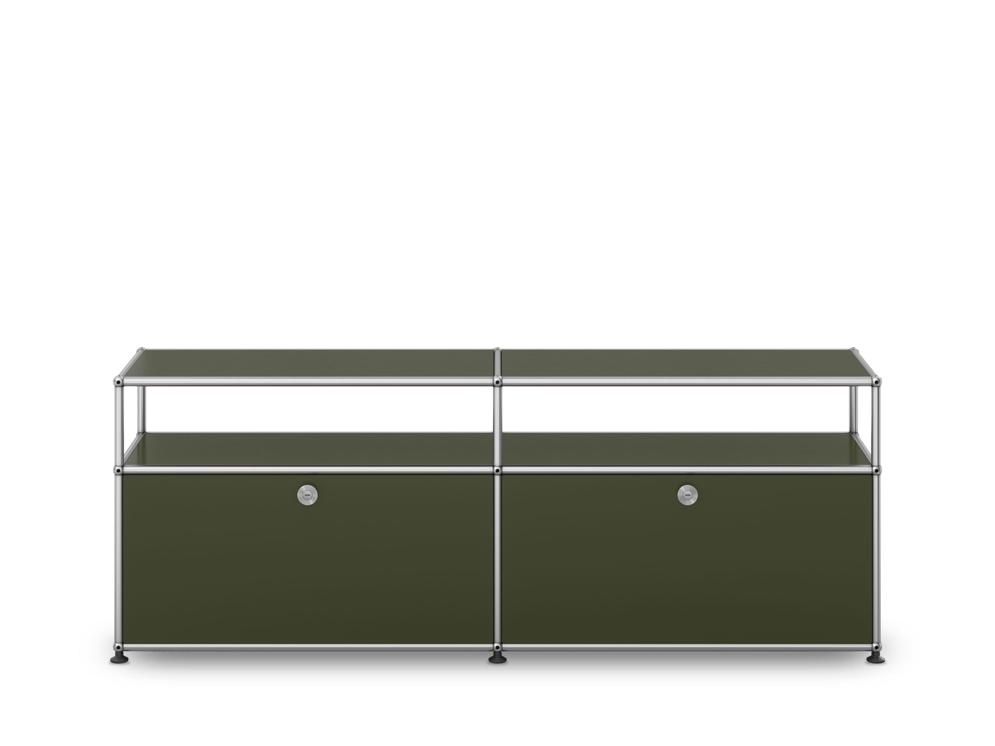 Produced using the famed Haller system, the Haller Media Unit is comprised of a series of steel modules and elegant ball connectors. As practical as it is effortlessly stylish, the Media Unit features two drop-down doors for concealed storage and ample space atop to display design objects and home furnishings.
