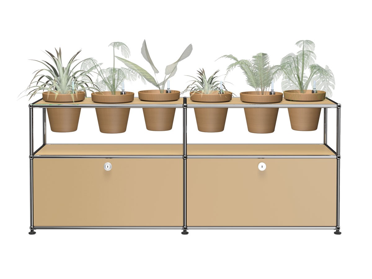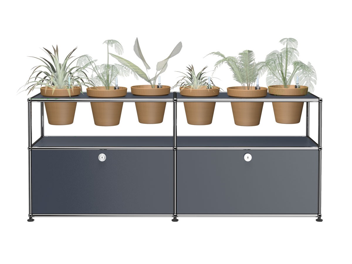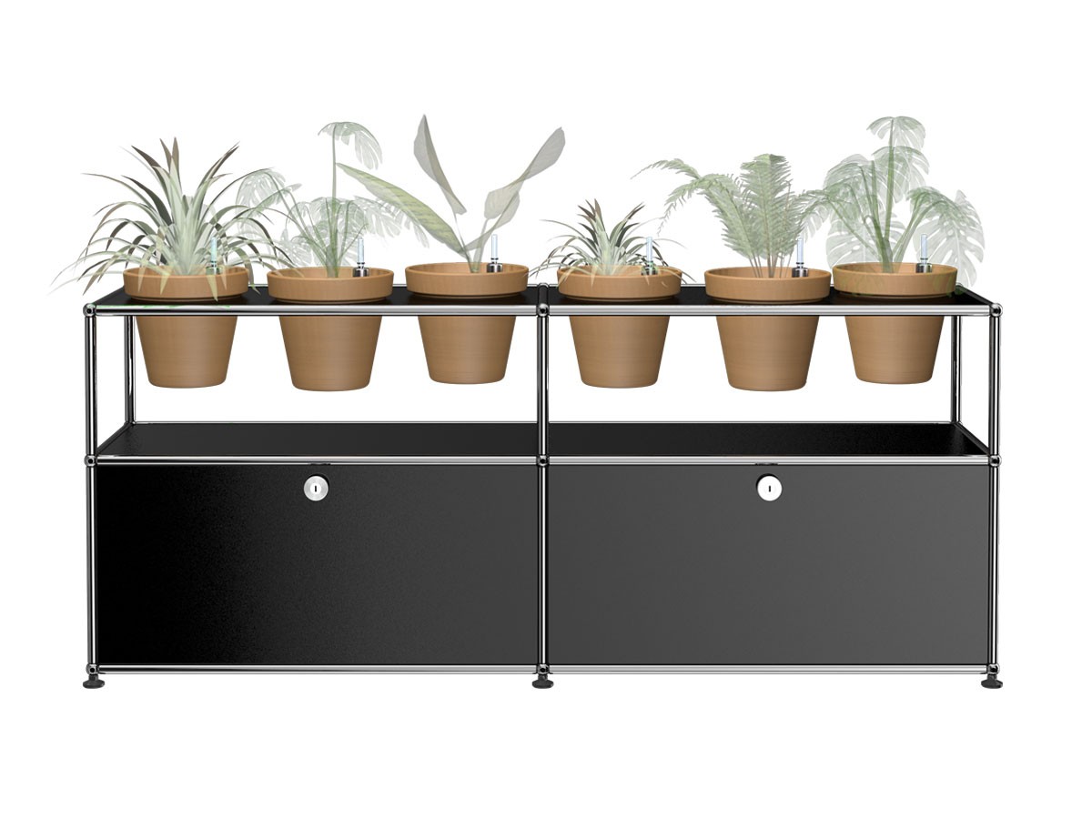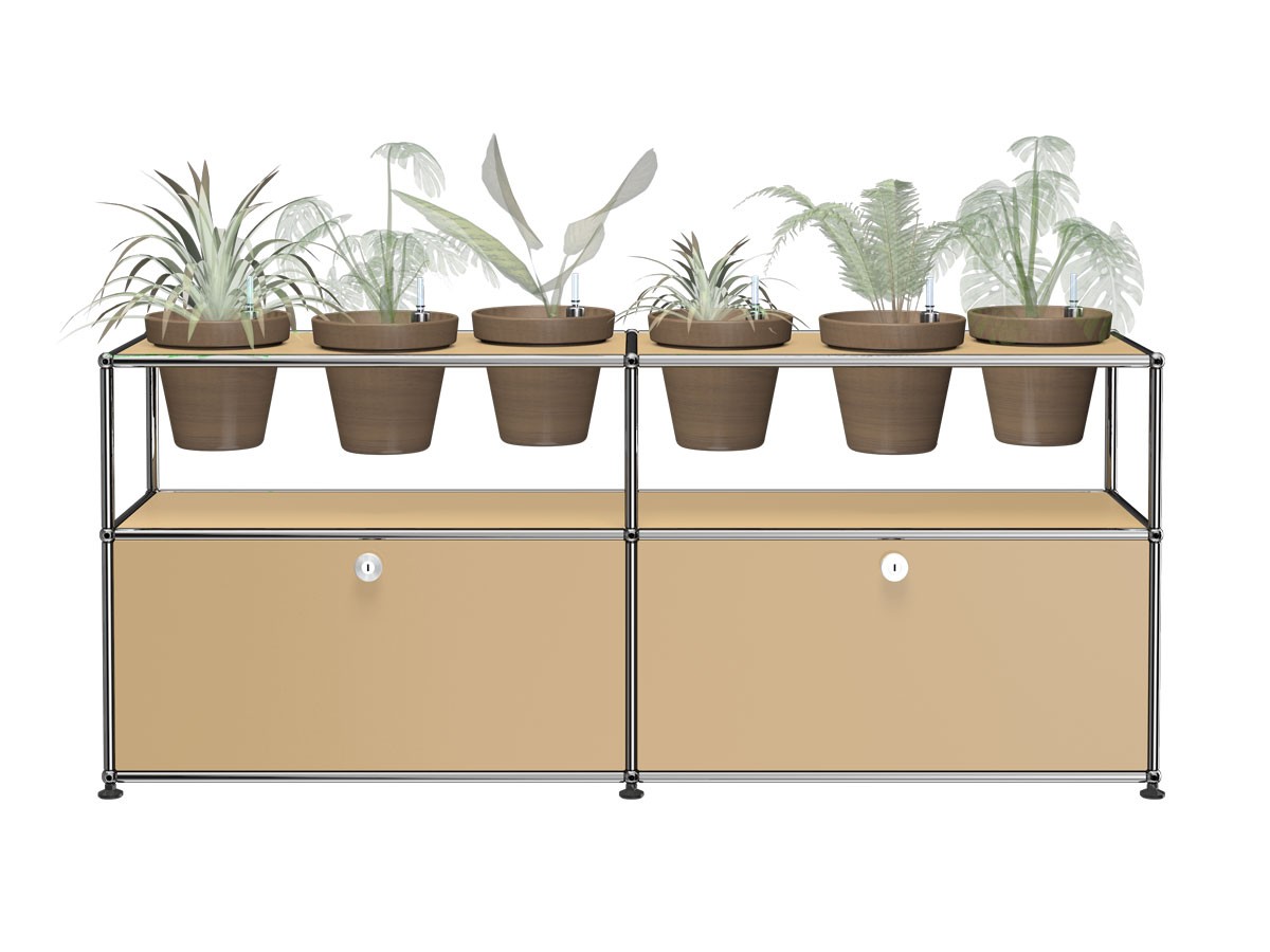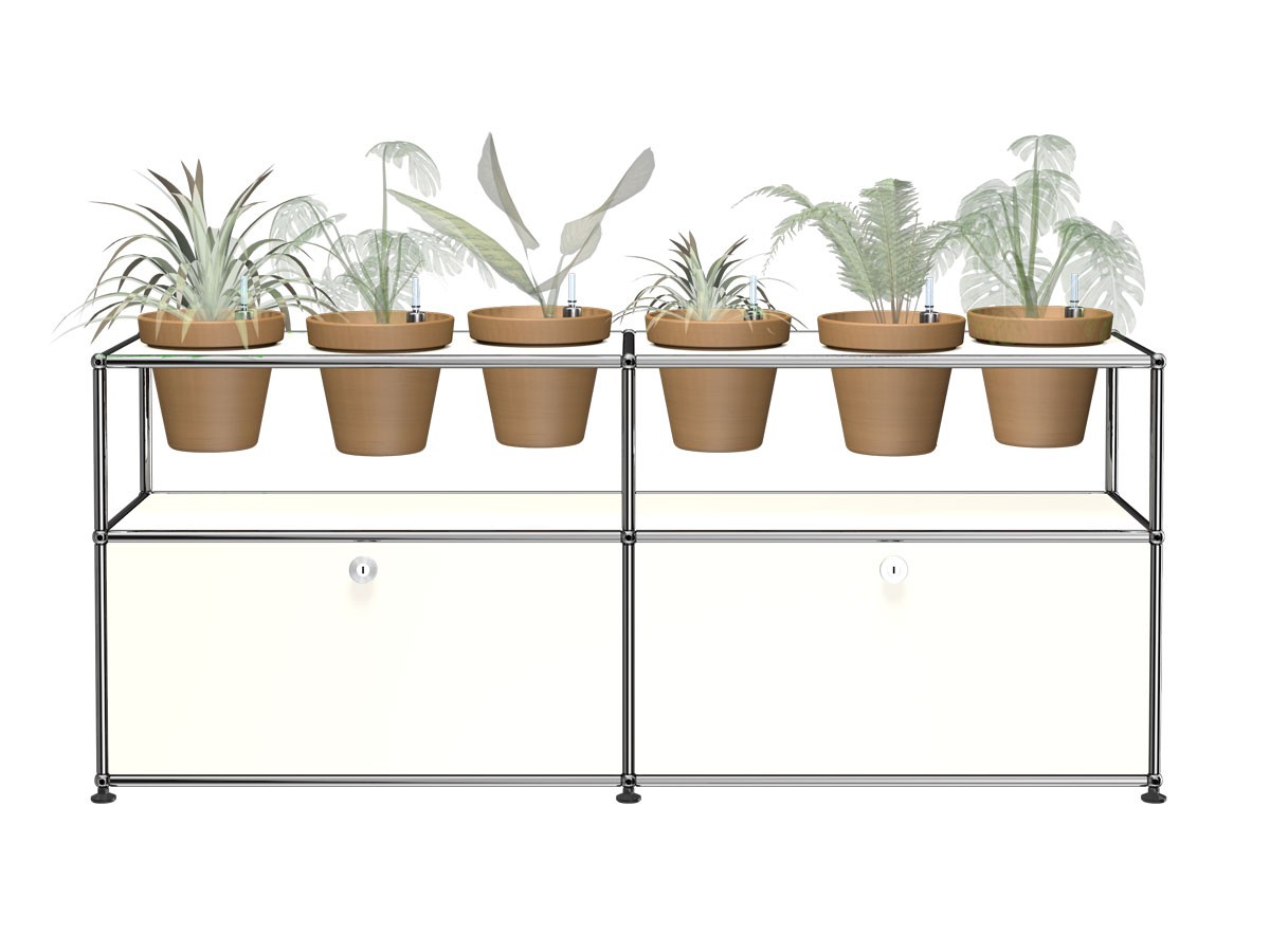 A truly multipurpose piece, the World of Plants Sideboard M47 fills spaces with an abundance of greenery, thanks to two metal panels that integrate plant pots directly into the system. Perfect for creating a sense of wellbeing and immersing ourselves in nature, the World of Plants Sideboard uses the iconic three-piece Haller system as the basis of its design, allowing it to be easily integrated into existing furniture configurations that grow with your space as you desire.