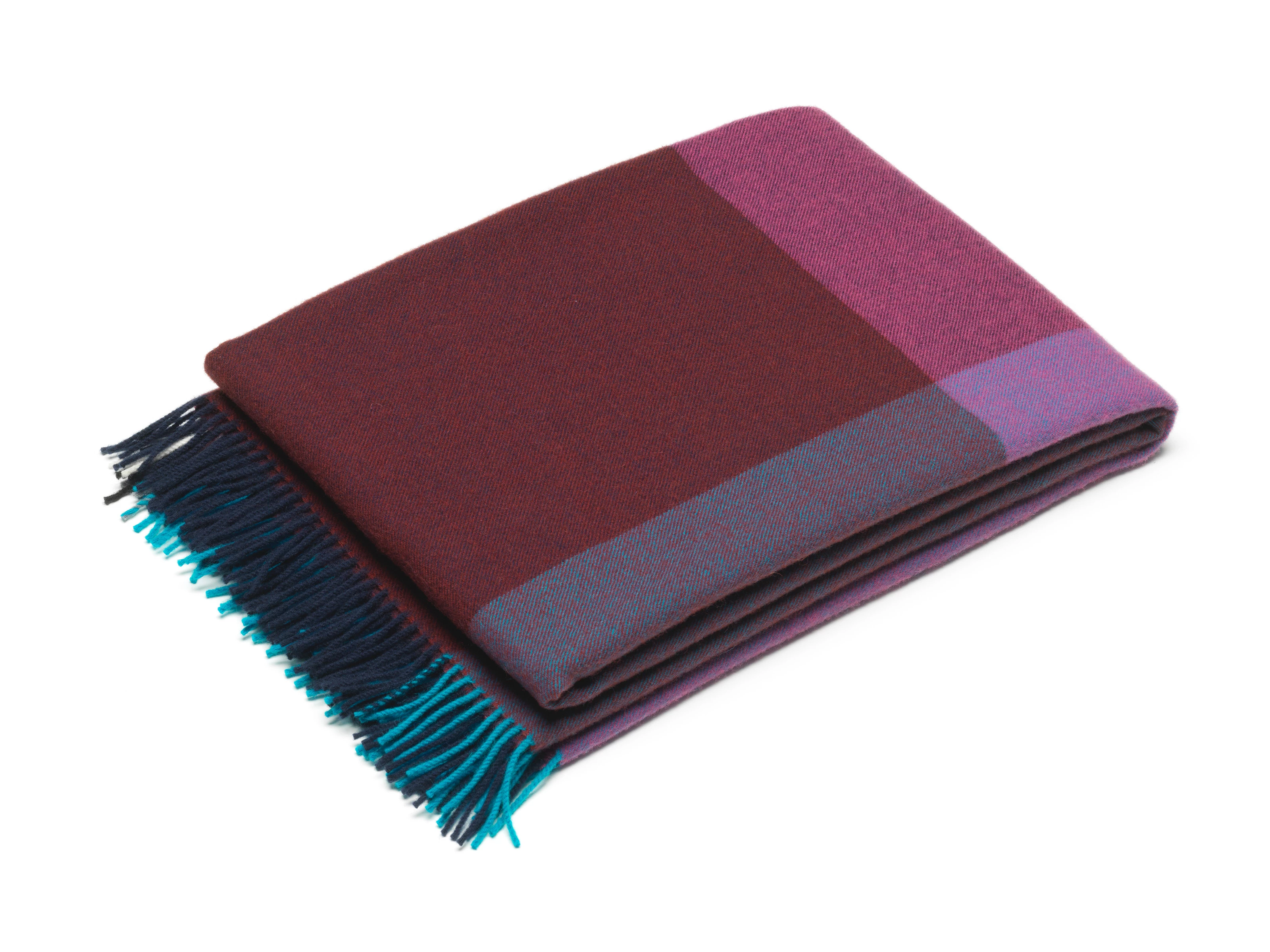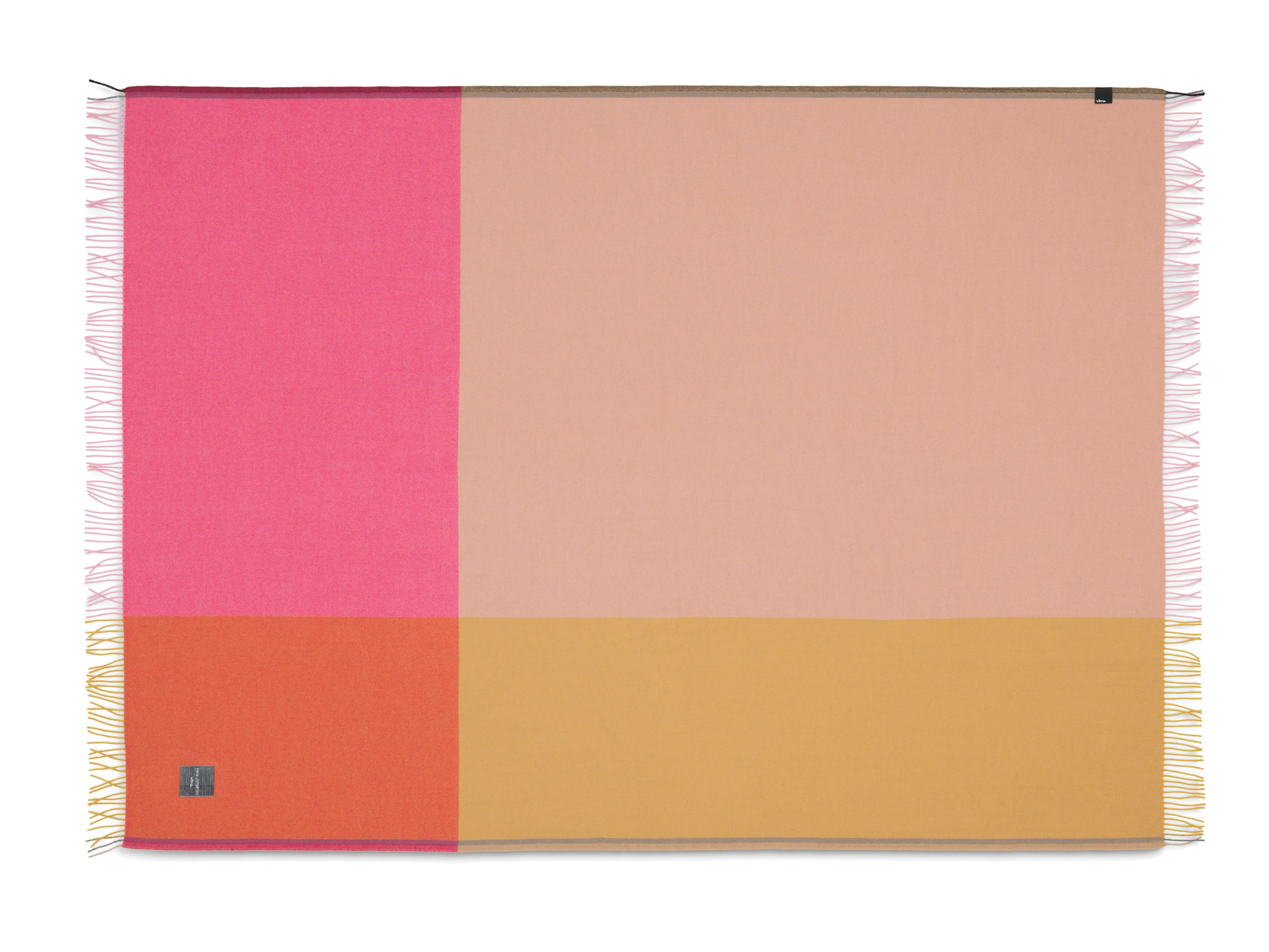 The captivating effect of the Colour Block Blanket is created by the interaction of four contrasting colour blocks of varying intensity, that are blended together by the interlocking weave. The two-tone colour combinations are visible in the fringed hem and in the thin strips of colour running along the edges. Hella Jongerius’ artistic brilliance shines through in every element, resulting in a carefully considered and beautiful product.