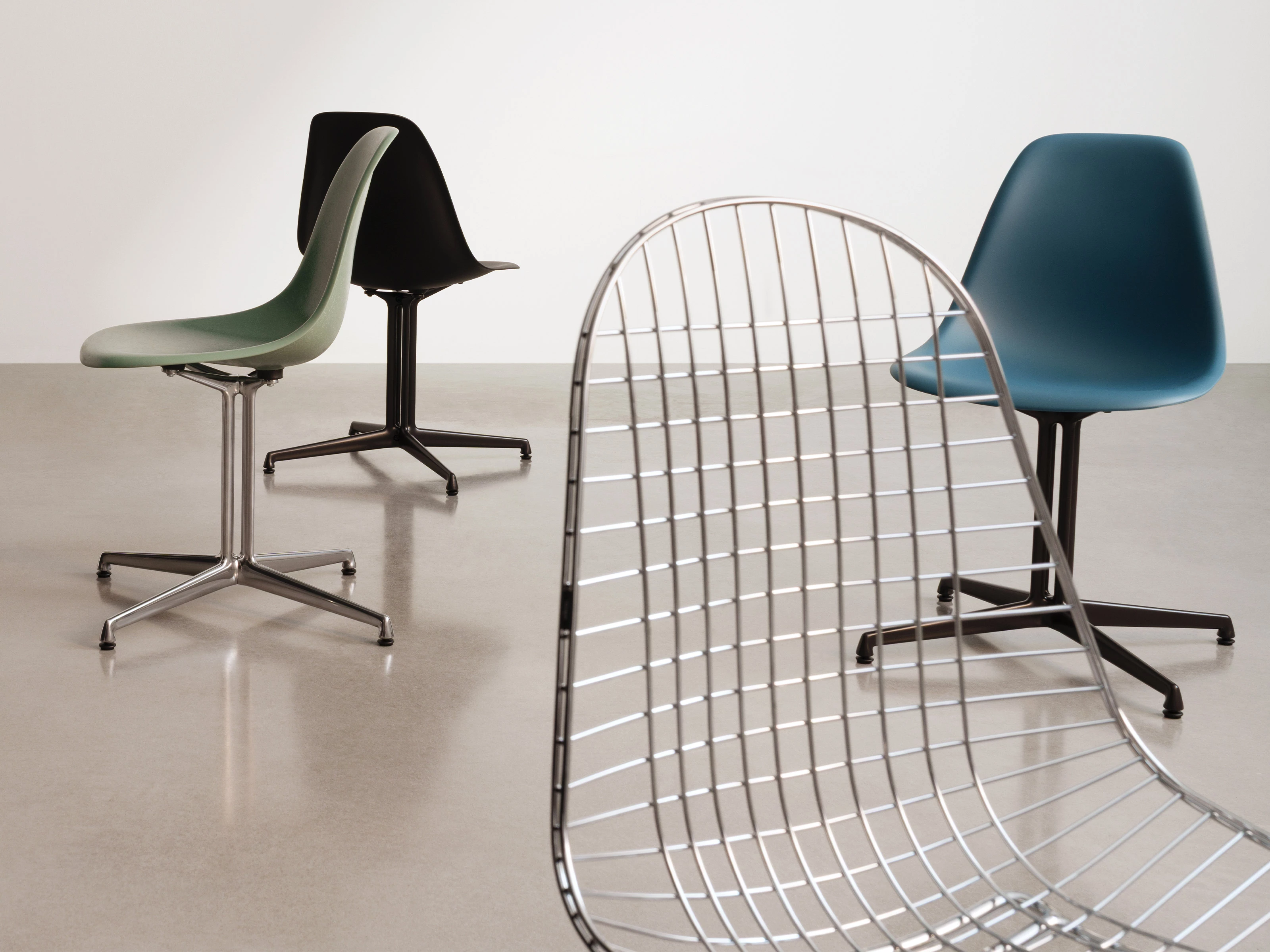 Made from recycled post-consumer plastic and 100% recyclable, the shells are available in a wide range of colourways and boast a distinctive surface finish thanks to the specks of pigment found throughout the material. The iconic DSL Eames Plastic Side Chairs enhance any living or dining space, while the powder-coated base versions are also suited to outdoor use, offering comfort in the open air and a contemporary, stylish accent.