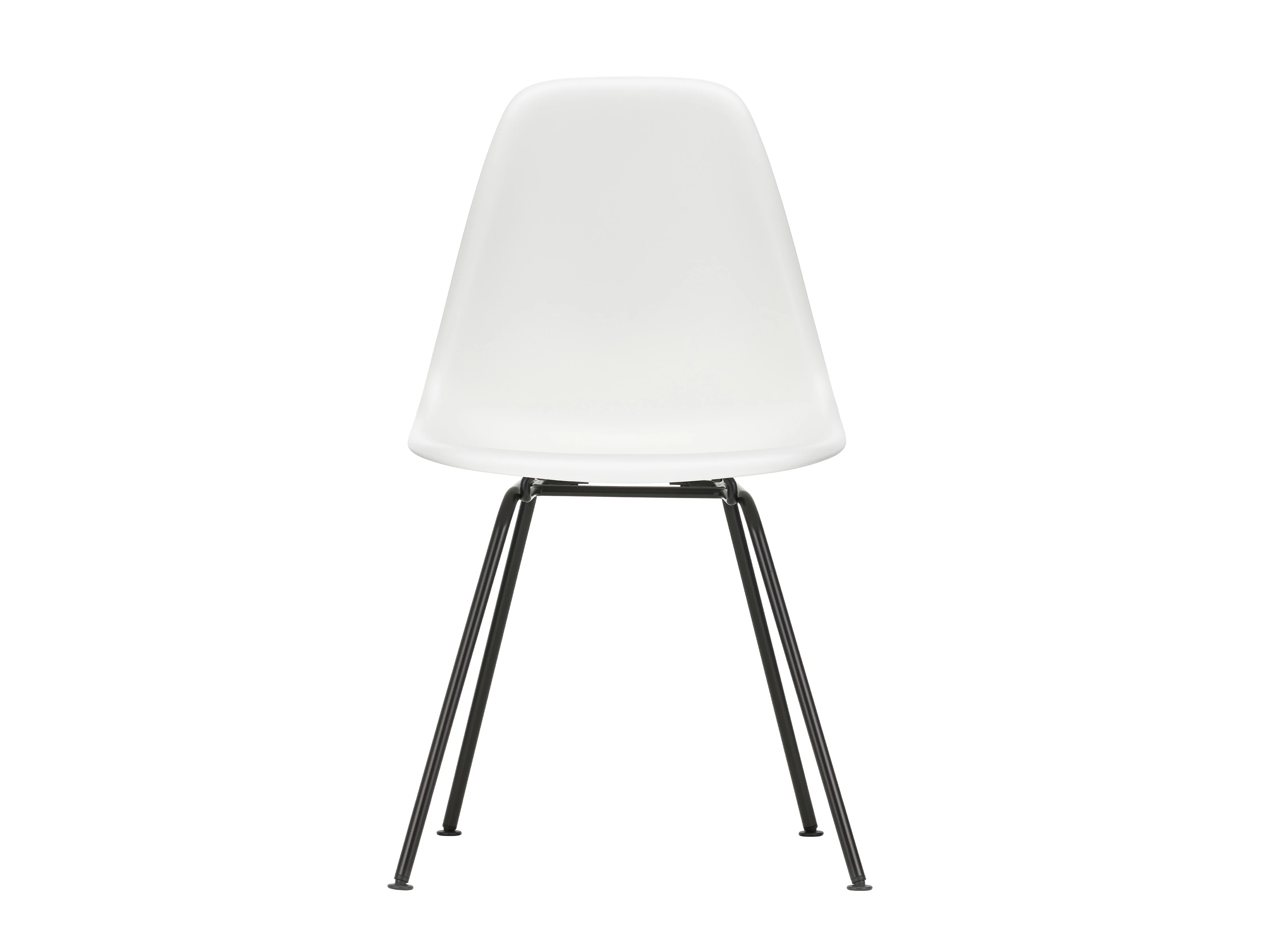 This configuration features a recycled polypropylene chair and a simple metal base with four legs, with the wider Eames collection of shell chairs featuring all manner of alternative seats and bases.