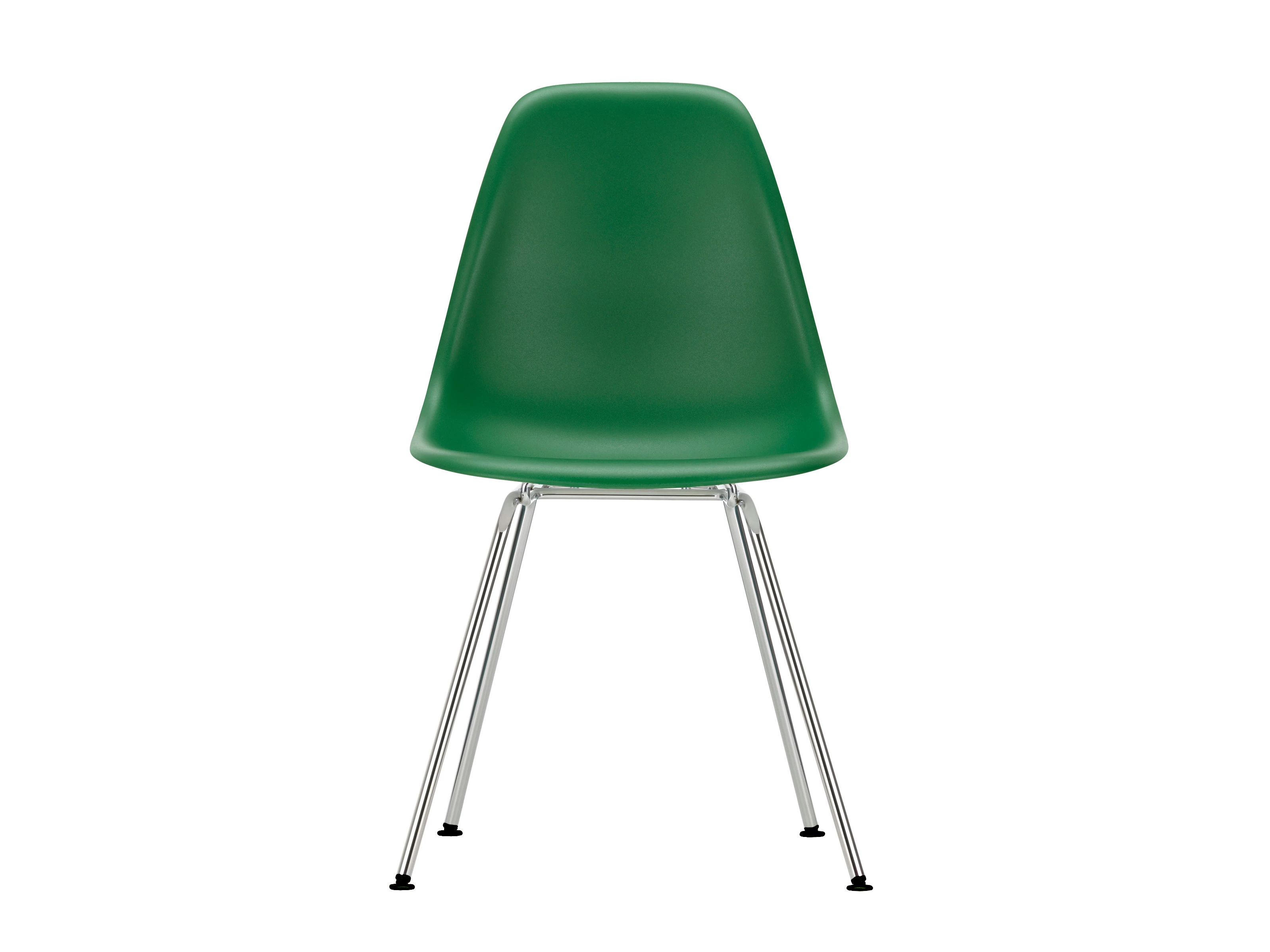 This configuration features a recycled polypropylene chair and a simple metal base with four legs, with the wider Eames collection of shell chairs featuring all manner of alternative seats and bases.
