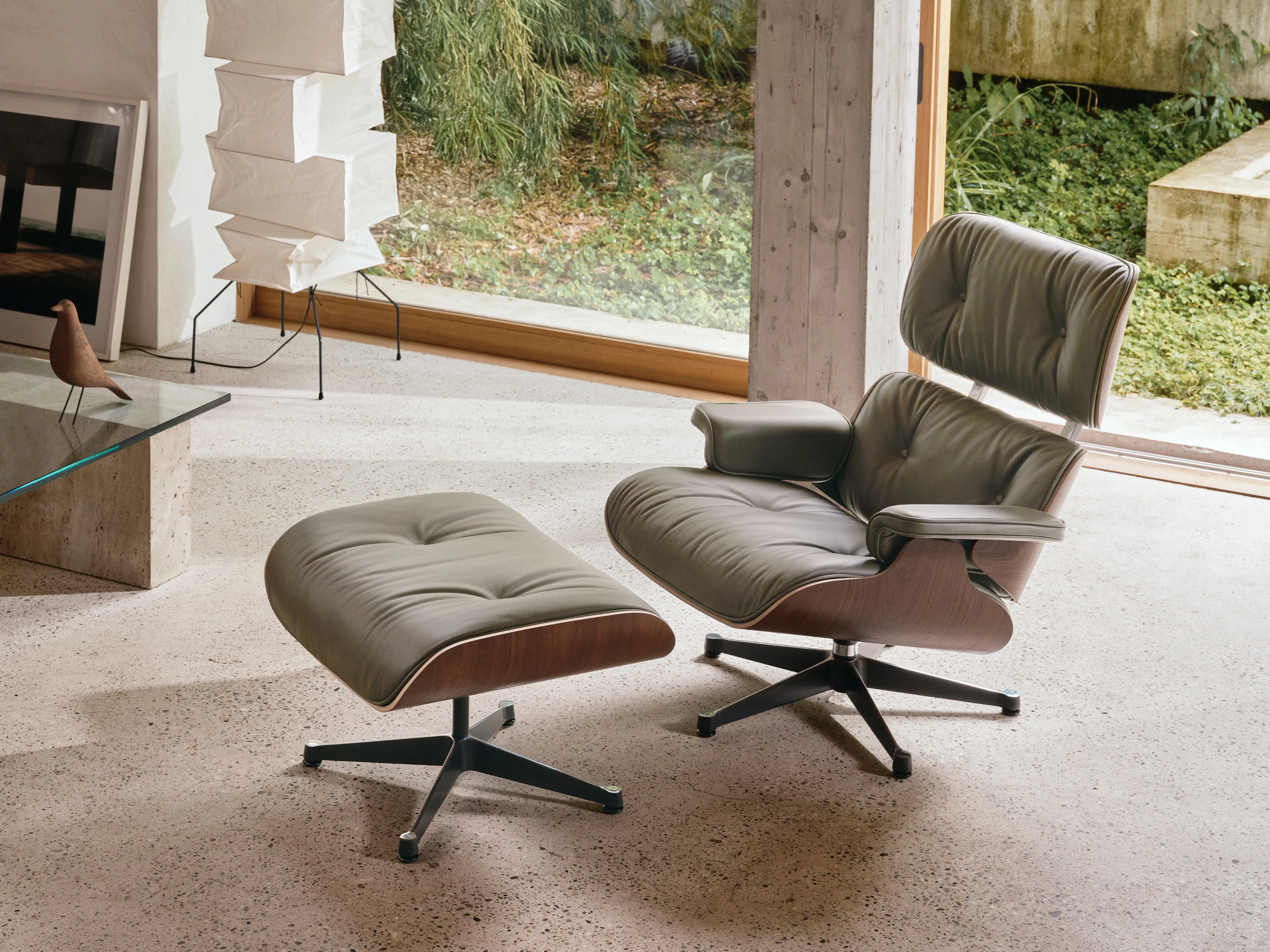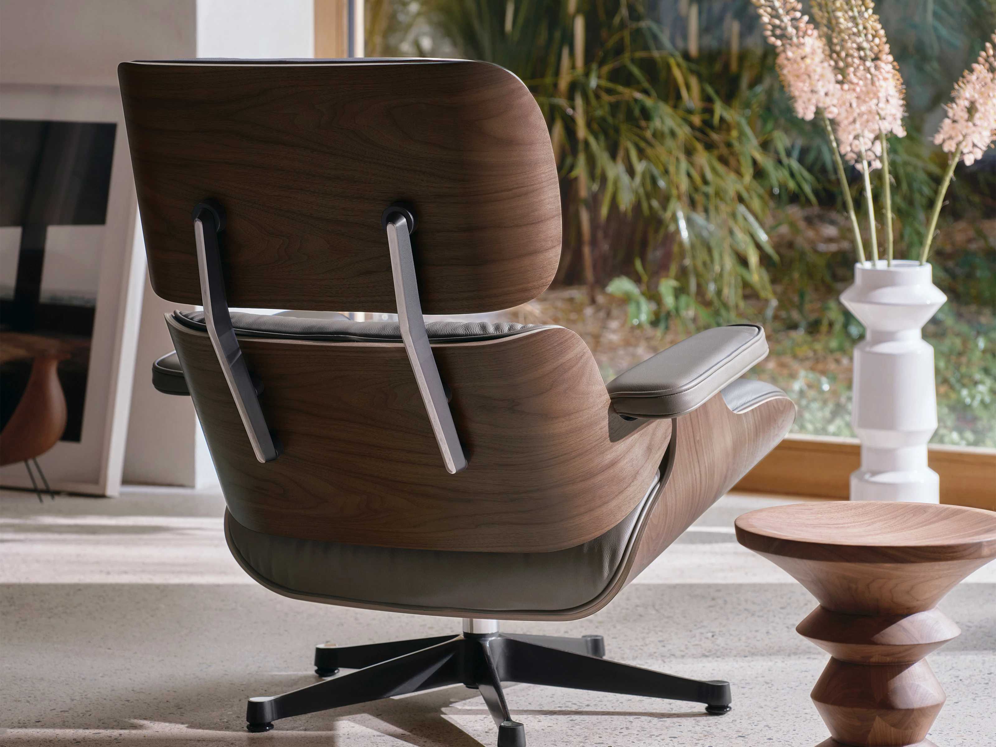 This latest version combines the understated elegance of dark European walnut with luxurious Vitra leather and a sleek, polished aluminium base, creating a stunning lounge chair and footstool that both leave a lasting impression no matter the setting. Timeless in style and crafted for exceptional comfort, the duo stands as a functional design made to be enjoyed for generations.