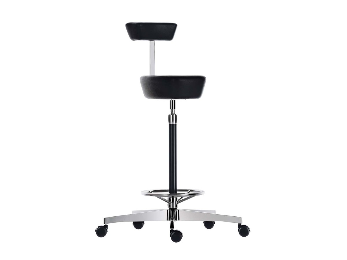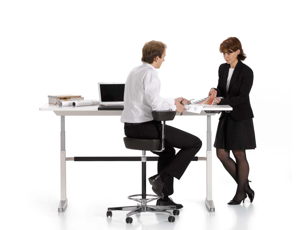 It serves as an ideal object for leaning on and providing healthy support during informal meetings at stand-up tables. The armrest and steel foot ring allow the user to adopt a variety of comfortable postures.